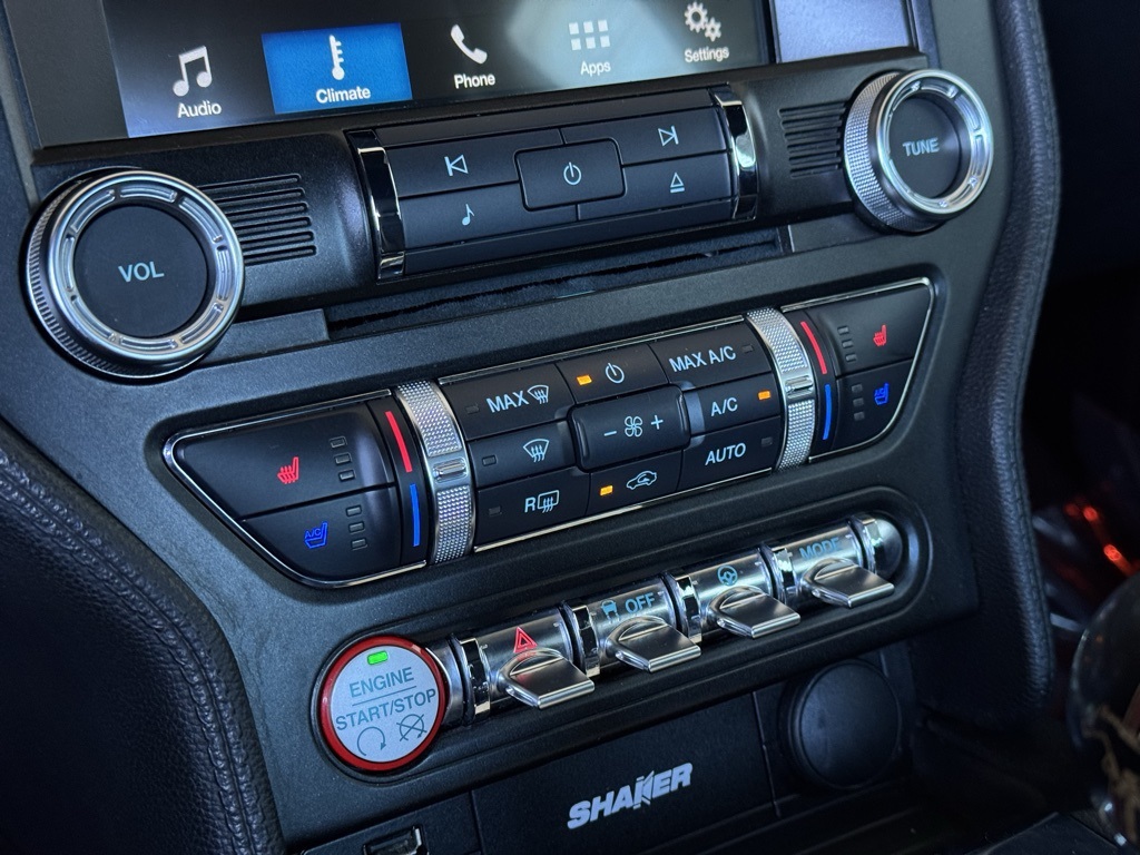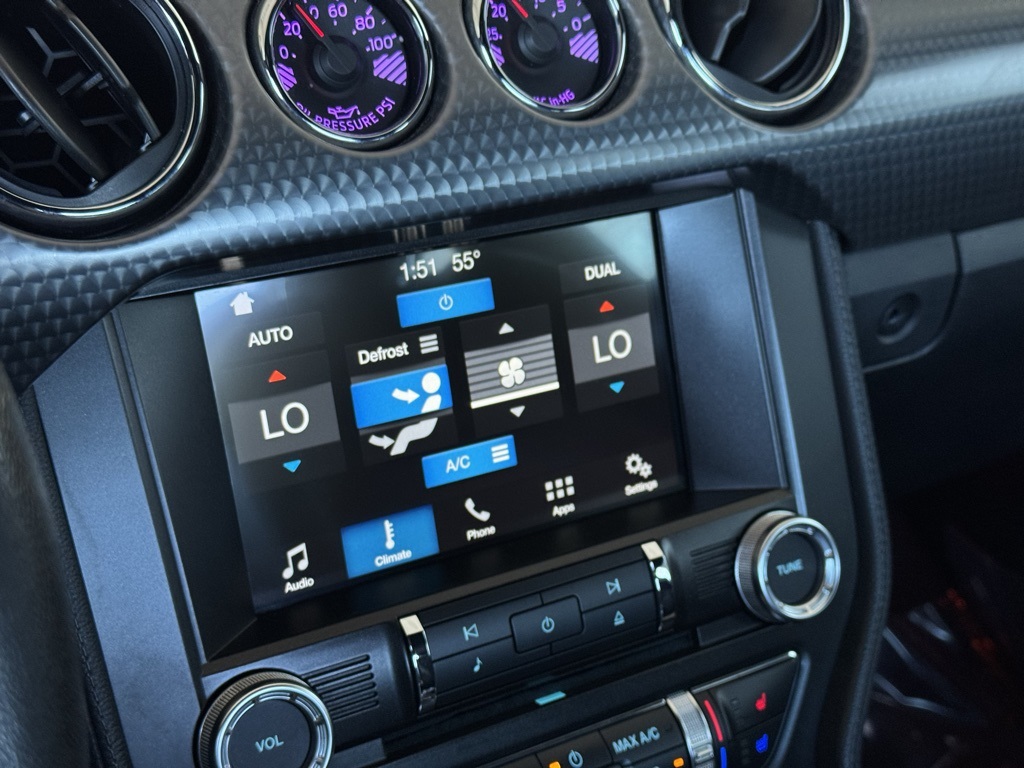 - 3.73 TORSEN Limited-Slip Rear Axle Ratio, 4-Wheel Disc Brakes, 9 Speakers, ABS brakes, Air Conditioning, Alloy wheels, AM/FM radio: SiriusXM, AM/FM Stereo w/Single CD Player, Auto-dimming Rear-View mirror, Automatic temperature control, Blind Spot Info System w/Cross-Traffic Alert, Block heater, Brake assist, Bumpers: body-color, CD player, Climate Controlled Heated/Cooled Front Seats, Compass, Delay-off headlights, Driver door bin, Driver vanity mirror, Dual front impact airbags, Dual front side impact airbags, Electronic Stability Control, Emergency communication system: 911 Assist, Engine Turn Aluminum Instrument Panel, Equipment Group 401A, Exterior Parking Camera Rear, Four wheel independent suspension, Front anti-roll bar, Front Bucket Seats, Front Center Armrest, Front dual zone A/C, Front fog lights, Front reading lights, Fully automatic headlights, Garage door transmitter, Gauge Pack (Oil Pressure and Vacuum), GT Performance Package, HD Front Springs, HD Radio, Heated door mirrors, Heated front seats, High-Intensity Discharge Headlights, Illuminated entry, Knee airbag, Larger Brake Rotors, Larger Radiator, Leather Bucket Seats, Leather Shift Knob, Low tire pressure warning, Memory Driver Seat, Mirrors & Ambient Lighting, Occupant sensing airbag, Outside temperature display, Overhead airbag, Overhead console, Panic alarm, Passenger door bin, Passenger vanity mirror, Power door mirrors, Power driver seat, Power passenger seat, Power steering, Power windows, Radio data system, Rear anti-roll bar, Rear window defroster, Remote keyless entry, Security system, Shaker Pro Audio System, SiriusXM Radio, Speed control, Speed-sensing steering, Speed-Sensitive Wipers, Split folding rear seat, Spoiler, Steering wheel mounted audio controls, SYNC 3 Communications & Entertainment System, Tachometer, Telescoping steering wheel, Tilt steering wheel, Traction control, Trip computer, Turn signal indicator mirrors, Unique Stability Control, Variably intermittent wipers, Ventilated front seats, Voltmeter, Wheels: 18" x 8" Magnetic Painted/Machined, Wheels: 19" x 9" Fr & 19" x 9.5" Rr Ebony Black, New Rear Tires, Clean CarFax, Local Trade, Well Maintained.2016 Ford Mustang GT Premium