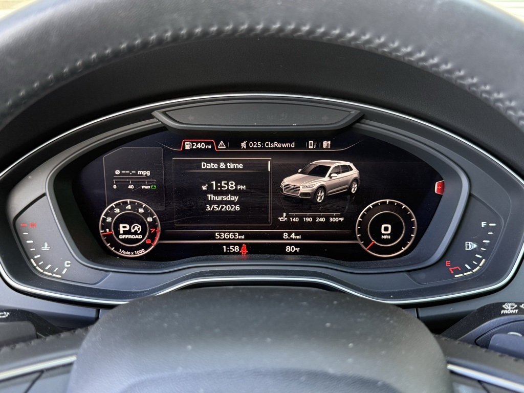 - Odometer is 40637 miles below market average! CARFAX One-Owner.2018 Audi Q5 2.0T Premium Plus Local Trade, One Owner, Well Maintained, 3-Step Heated Front Seats, 3-Step Heated Rear Seats, ABS brakes, Alloy wheels, Audi Advanced Key, Audi Connect CARE, Audi Connect PRIME & PLUS, Audi Side Assist w/Pre Sense Rear, Audi Virtual Cockpit, Cold Weather Package, Compass, Driver Seat Memory, Electronic Stability Control, Front dual zone A/C, Full LED Headlights, Heated 3-Spoke Multifunction Steering Wheel, Heated Auto-Dimming & Power-Adjustable Mirrors, Heated door mirrors, High Gloss Window Surrounds, Illuminated entry, Low tire pressure warning, Navigation Package, Panoramic Sunroof w/Tilt/Slide & Power Sunshade, Parking System Plus (Front/Rear Acoustic Sensors), Power Liftgate, Premium Plus Package, Radio: MMI Navigation Plus System, Remote keyless entry, SiriusXM All Access Service, Stainless Steel Door Sills, Traction control.
