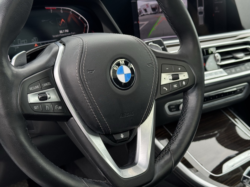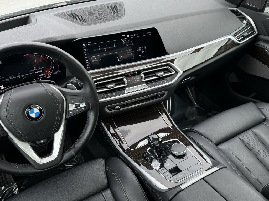 - Black w/Vernasca Leather Upholstery, 10 Speakers, 3.39 Axle Ratio, 4-Wheel Disc Brakes, ABS brakes, Air Conditioning, Alloy wheels, AM/FM radio, AM/FM Stereo, Apple CarPlay, Auto High-beam Headlights, Auto tilt-away steering wheel, Auto-dimming door mirrors, Auto-dimming Rear-View mirror, Automatic temperature control, Brake assist, Bumpers: body-color, Compass, Delay-off headlights, Driver door bin, Driver vanity mirror, Dual front impact airbags, Dual front side impact airbags, Electronic Stability Control, Emergency communication system: BMW Assist eCall, Exterior Parking Camera Rear, Four wheel independent suspension, Front anti-roll bar, Front Bucket Seats, Front Center Armrest, Front dual zone A/C, Front fog lights, Front reading lights, Fully automatic headlights, Garage door transmitter, Genuine wood console insert, Genuine wood dashboard insert, Genuine wood door panel insert, Head restraints memory, Heated door mirrors, Heated Front Seats, Heated front seats, Hi-Fi Sound System, Illuminated entry, Knee airbag, Leather Shift Knob, Leather steering wheel, Low tire pressure warning, Lumbar Support, Memory seat, Navigation System, Occupant sensing airbag, Outside temperature display, Overhead airbag, Panic alarm, Passenger door bin, Passenger vanity mirror, Power adjustable front head restraints, Power door mirrors, Power driver seat, Power Front Seats, Power moonroof, Power passenger seat, Power steering, Power windows, Radio data system, Rain sensing wipers, Rear air conditioning, Rear anti-roll bar, Rear reading lights, Rear seat center armrest, Rear window defroster, Rear window wiper, Remote keyless entry, Roof rack: rails only, Security system, SensaTec Upholstery, Speed control, Speed-sensing steering, Speed-Sensitive Wipers, Split folding rear seat, Spoiler, Sport Seats, Sport steering wheel, Steering wheel memory, Steering wheel mounted audio controls, Tachometer, Telescoping steering wheel, Tilt steering wheel, Traction control, Trip computer, Turn signal indicator mirrors, Variably intermittent wipers, Wheels: 19" x 9" V-Spoke (Style 734), Black w/Vernasca Leather Upholstery.2019 BMW X5 xDrive40i