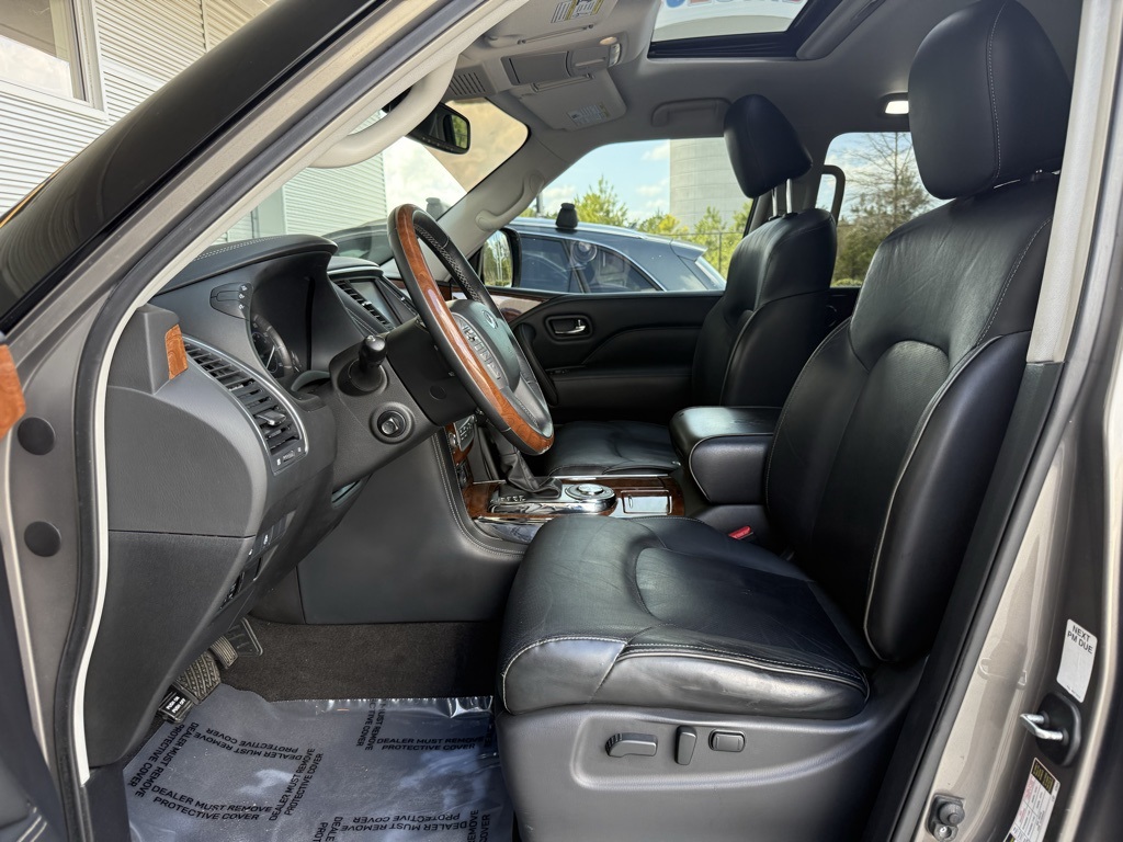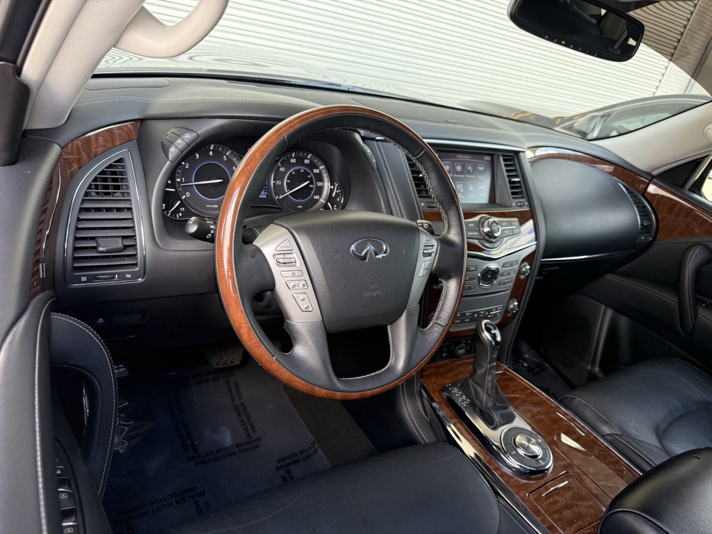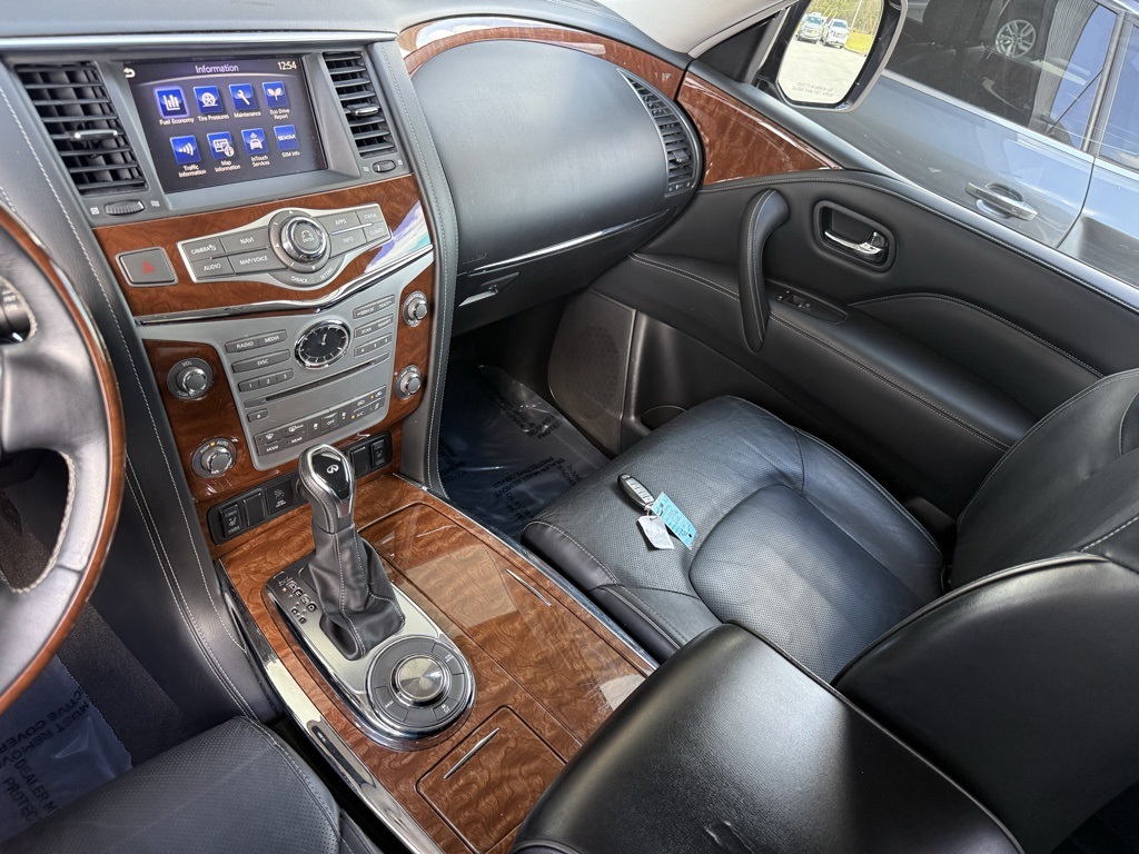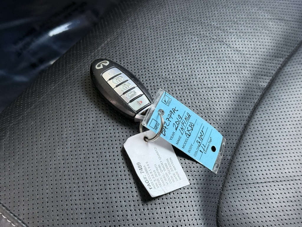 - Odometer is 36213 miles below market average!2019 INFINITI QX80 LUXE 13 Speakers, 3rd row seats: split-bench, 4-Wheel Disc Brakes, ABS brakes, Alloy wheels, Anti-whiplash front head restraints, Auto tilt-away steering wheel, Auto-dimming Rear-View mirror, Auto-leveling suspension, Automatic temperature control, Dual front impact airbags, Dual front side impact airbags, Emergency communication system: INFINITI Connection, Front anti-roll bar, Front dual zone A/C, Fully automatic headlights, Garage door transmitter: HomeLink, Heated front seats, Leather-Appointed Seats w/Stratford Burl Trim, Low tire pressure warning, Memory seat, Navigation system: INFINITI InTouch Navigation, Occupant sensing airbag, Overhead airbag, Power Liftgate, Power moonroof, Radio: AM/FM/HD w/Single In-Dash CD/DVD Player & MP3, Rain sensing wipers, Rear anti-roll bar, Speed-sensing steering, Steering wheel memory, Steering wheel mounted audio controls, Wheels: 20" x 8.0" Aluminum-Alloy.