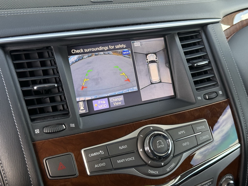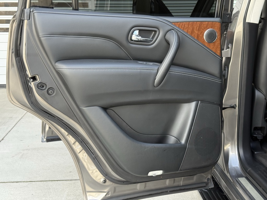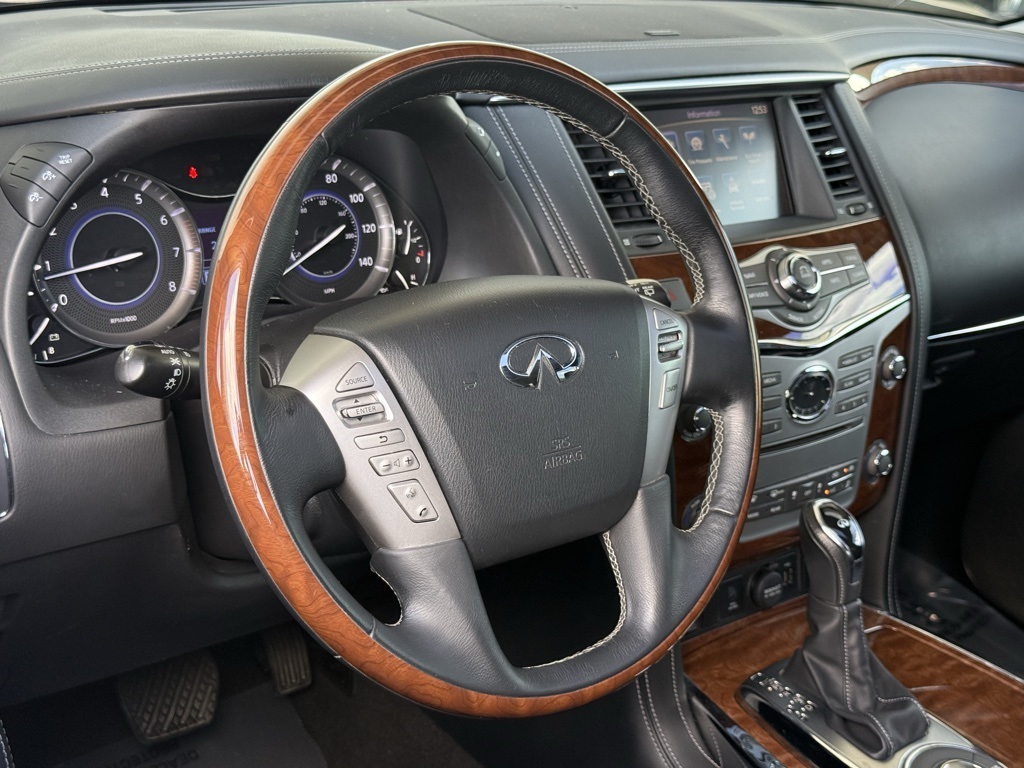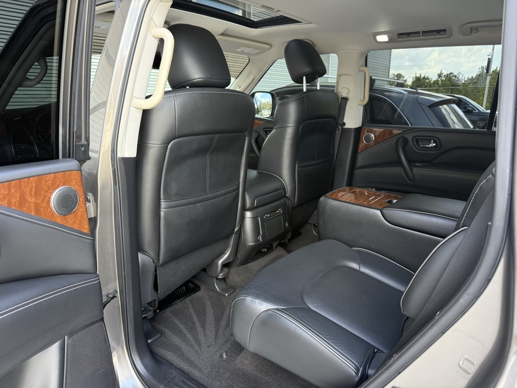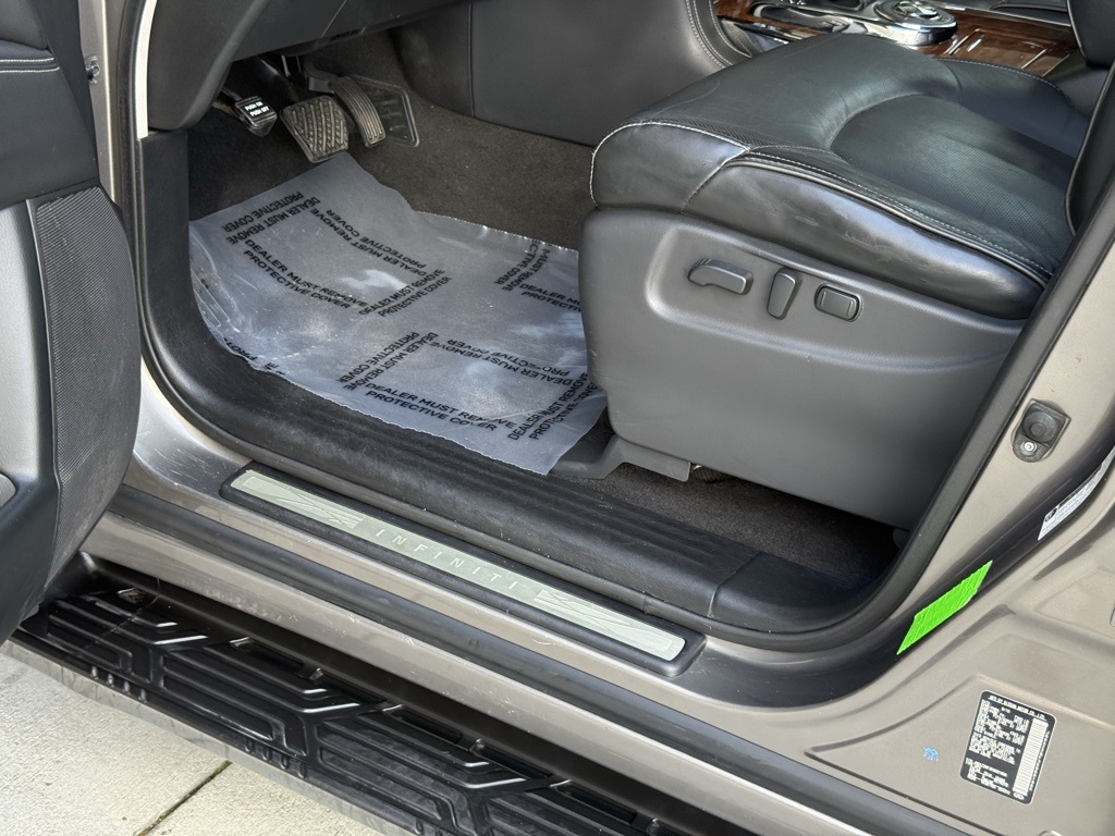 - Odometer is 36213 miles below market average!2019 INFINITI QX80 LUXE 13 Speakers, 3rd row seats: split-bench, 4-Wheel Disc Brakes, ABS brakes, Alloy wheels, Anti-whiplash front head restraints, Auto tilt-away steering wheel, Auto-dimming Rear-View mirror, Auto-leveling suspension, Automatic temperature control, Dual front impact airbags, Dual front side impact airbags, Emergency communication system: INFINITI Connection, Front anti-roll bar, Front dual zone A/C, Fully automatic headlights, Garage door transmitter: HomeLink, Heated front seats, Leather-Appointed Seats w/Stratford Burl Trim, Low tire pressure warning, Memory seat, Navigation system: INFINITI InTouch Navigation, Occupant sensing airbag, Overhead airbag, Power Liftgate, Power moonroof, Radio: AM/FM/HD w/Single In-Dash CD/DVD Player & MP3, Rain sensing wipers, Rear anti-roll bar, Speed-sensing steering, Steering wheel memory, Steering wheel mounted audio controls, Wheels: 20" x 8.0" Aluminum-Alloy.