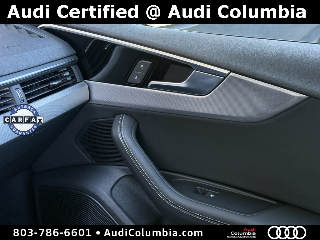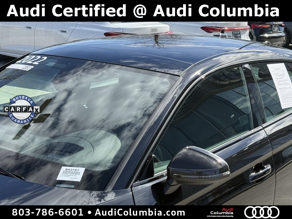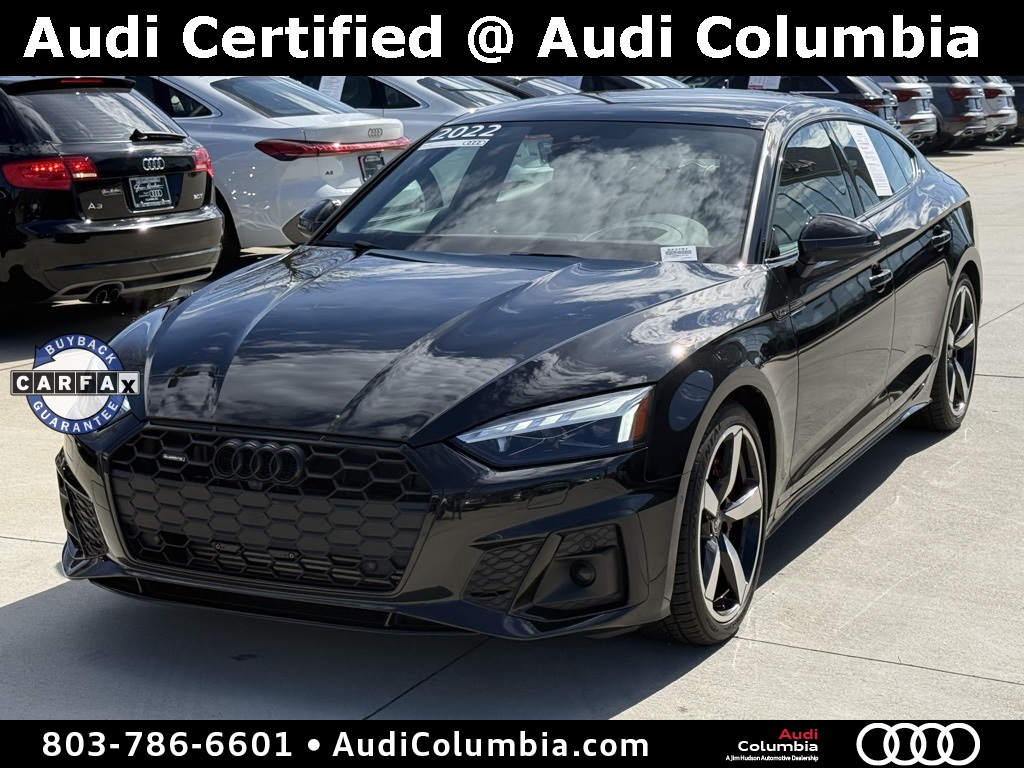 - Clean CARFAX.2022 Audi A5 Sportback Prestige Clean CarFax, Well Maintained, 2 Rear USB Charge Ports, 4-Wheel Disc Brakes, ABS brakes, Adaptive Cruise Control w/Traffic Jam Assist, Alloy wheels, Aluminum Ellipse Dark Inlays, Animation for Headlights & Taillights, Anti-whiplash front head restraints, Audi Active Lane Assist, Audi Advanced Key, Audi Phone Box, Audi Virtual Cockpit Plus, Automatic temperature control, Bang & Olufsen Sound System w/3D Sound, Black Exterior Mirrors, Black Optic Plus Package, Convenience Package, Driver Seat Memory, Dual front impact airbags, Dual front side impact airbags, Emergency communication system: Audi connect CARE, Exterior Parking Camera Rear, Front anti-roll bar, Front dual zone A/C, Garage door transmitter: HomeLink, Head-Up Display, Heated Front Bucket Seats, Heated Rear Seats, High-Gloss Black Exterior Trim, Interior Lighting Plus Package, Knee airbag, Leather Seating Surfaces, Low tire pressure warning, Matrix-Design LED Headlights w/Audi Laser Light, Matte Black Front Grille, MMI Navigation Plus, Navigation Package, Navigation System, Occupant sensing airbag, Overhead airbag, Park Assist, Parking System Plus (Front/Rear Acoustic Sensors), Power adjustable front head restraints, Power Folding Exterior Mirrors, Power Liftgate, Power moonroof, Prestige, Rain sensing wipers, Rear anti-roll bar, Red Brake Calipers, Speed-sensing steering, Top View Camera System, Traffic Sign Recognition, Ventilated Front Seats, Wheels: 19" 5-Arm-Cutter Design Bi-Color Finish.