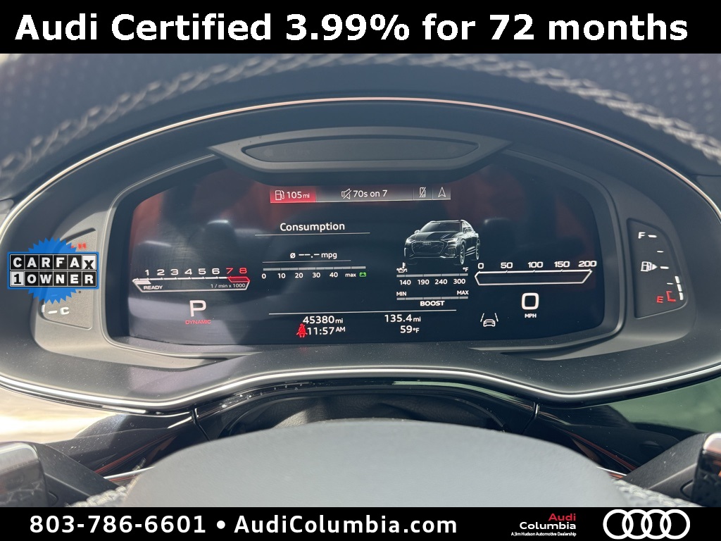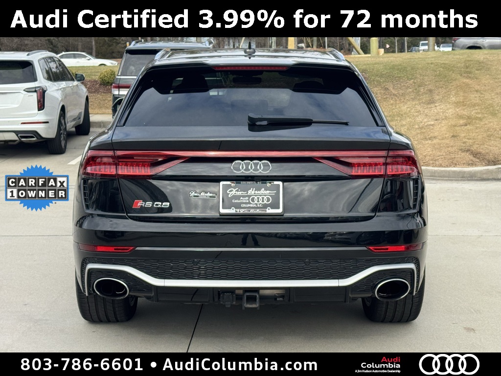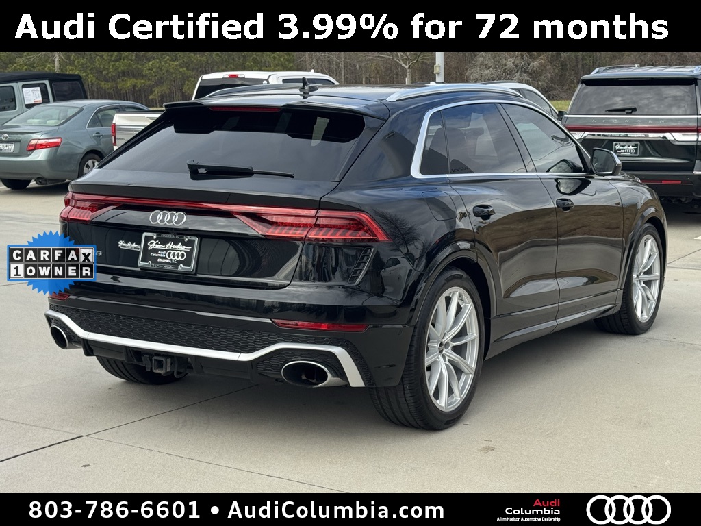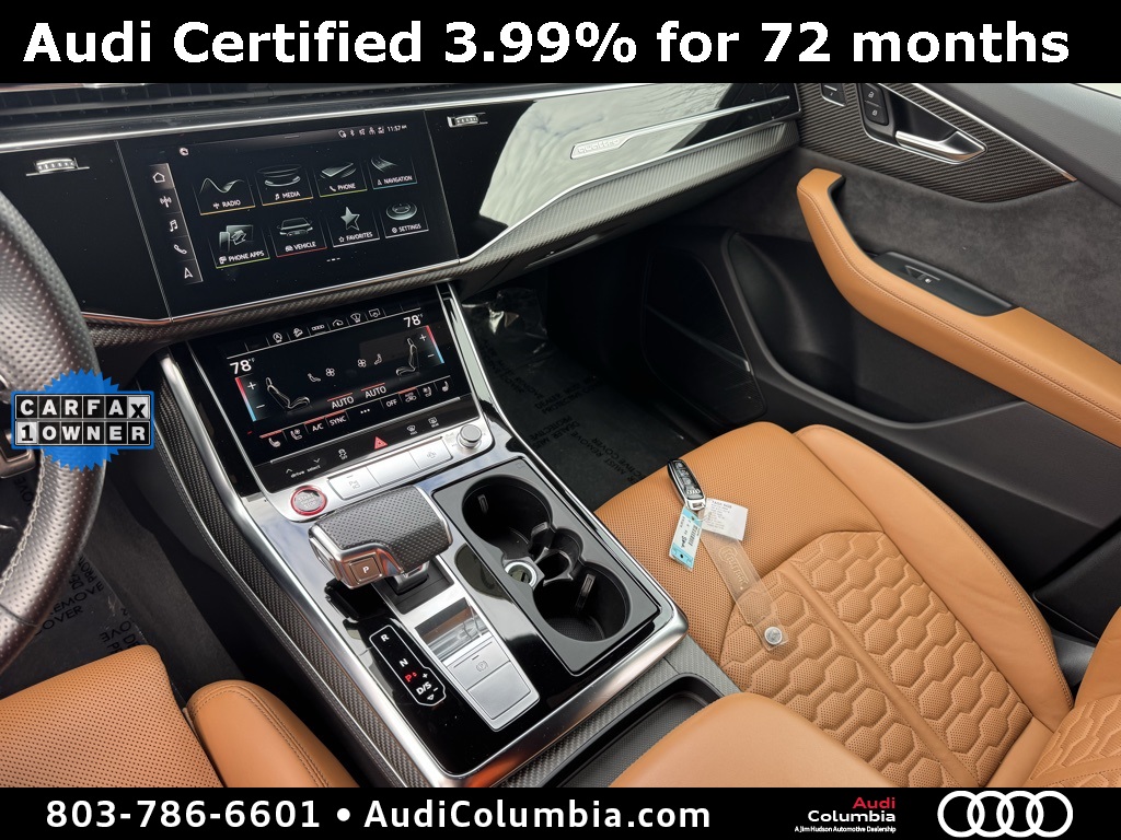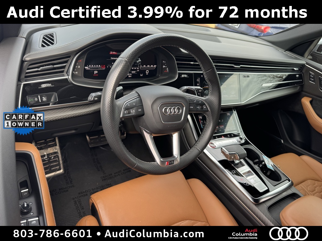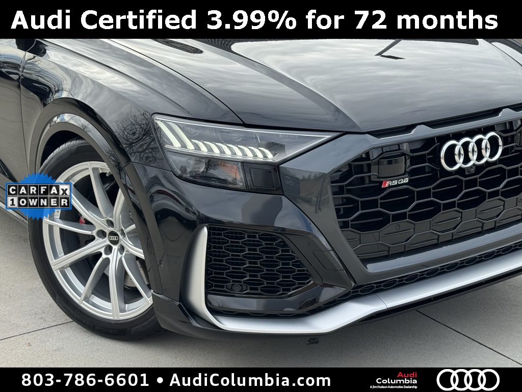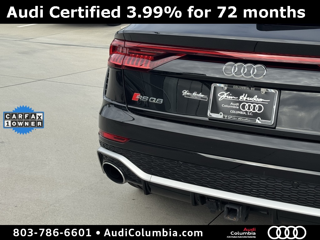 - Audi Certified pre-owned Details: * Roadside Assistance * Certified pre-owned Limited Warranty: For all CPO sales on or after 8/1/23, if New Vehicle Limited Warranty (NVLW) coverage remains at time of CPO purchase, CPO Limited Warranty Coverage commences upon expiration of NVLW and continues for a period of 1 year or 20,000 miles, whichever occurs first. If NVLW coverage has expired at time of CPO purchase, CPO Limited Warranty coverage commences at time of purchase and continues for 1 year or 20,000 miles, whichever occurs first. Roadside Assistance for 1 year with unlimited miles, whichever occurs first. Effective 8/1/23 onward, private party transfers no longer accepted, eligible for previous CPO customers with sale dates prior to 8/1/23 to utilize if they so choose. * 125+ Point Inspection * Warranty Deductible: $0 * Vehicle HistoryClean CARFAX. CARFAX One-Owner.2022 Audi RS Q8 4.0T Clean CarFax, One Owner, Well Maintained, 17 Speakers, 4-Wheel Disc Brakes, ABS brakes, Adaptive suspension, Alloy wheels, Audi smartphone interface (Apple CarPlay/Android Auto), Auto High-beam Headlights, Auto-leveling suspension, Automatic temperature control, Bang & Olufsen 3D Premium Sound System, Dual front impact airbags, Dual front side impact airbags, Dual-Pane Acoustic Glass, Emergency communication system: Audi connect CARE, PRIME & PLUS, Executive Package, Front anti-roll bar, Front dual zone A/C, Fully automatic headlights, Head-Up Display, Heated & Ventilated Front S Sport Seats, Heated front seats, Intersection Assist, Low tire pressure warning, Memory seat, Navigation system: Audi MMI Navigation plus with Touch Response, Occupant sensing airbag, Overhead airbag, Perforated Valcona Leather Seating Surfaces, Power Liftgate, Power moonroof: Panoramic, Power Soft-Closing Doors, Radio: MMI Navigation Plus w/MMI Touch Response, Rain sensing wipers, Rear anti-roll bar, Rear dual zone A/C, Rear side impact airbag, Speed-sensing steering, Steering wheel mounted audio controls, Ventilated front seats, Wheels: 22" 10-V-Spoke Star Design.