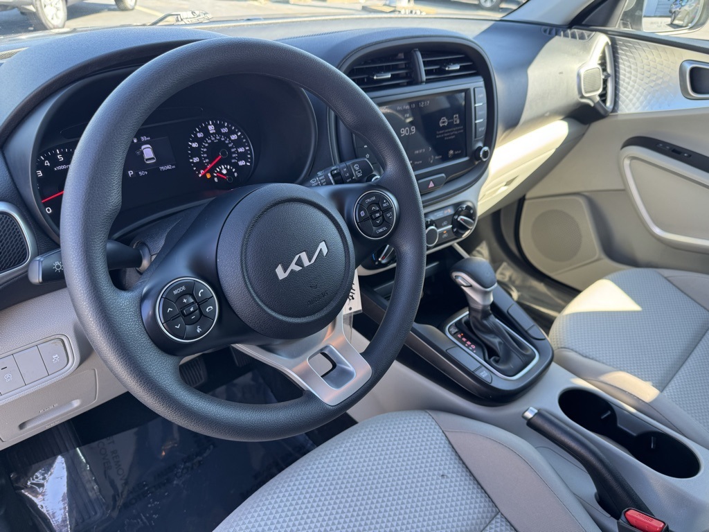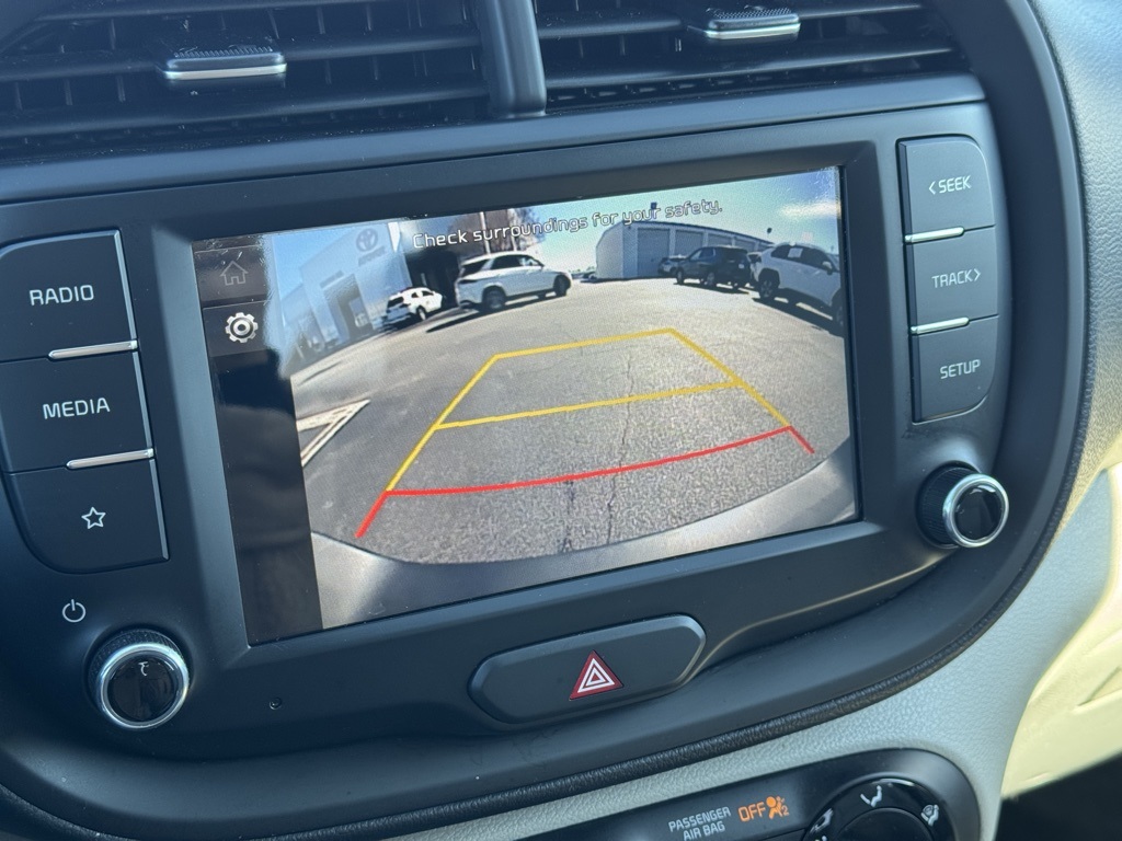 - 16" x 6.5" Alloy Wheels, 16" x 6.5" Steel Wheels, 4-Wheel Disc Brakes, 6 Speakers, ABS brakes, Air Conditioning, AM/FM radio, Apple CarPlay & Android Auto, Brake assist, Bumpers: body-color, Carpeted Floor Mats, Delay-off headlights, Driver door bin, Driver vanity mirror, Dual front impact airbags, Dual front side impact airbags, Electronic Stability Control, Exterior Parking Camera Rear, Front anti-roll bar, Front Bucket Seats, Front Center Armrest, Front reading lights, Front wheel independent suspension, Fully automatic headlights, Illuminated entry, Low tire pressure warning, Occupant sensing airbag, Outside temperature display, Overhead airbag, Overhead console, Panic alarm, Passenger door bin, Passenger vanity mirror, Power door mirrors, Power steering, Power windows, Radio: AM/FM/MP3 Audio System, Rear Bumper Applique, Rear window defroster, Rear window wiper, Remote keyless entry, Speed control, Speed-sensing steering, Split folding rear seat, Steering wheel mounted audio controls, Tachometer, Telescoping steering wheel, Tilt steering wheel, Traction control, Trip computer, Variably intermittent wipers, Woven & Tricot Cloth Seat Trim.2022 Kia Soul LX