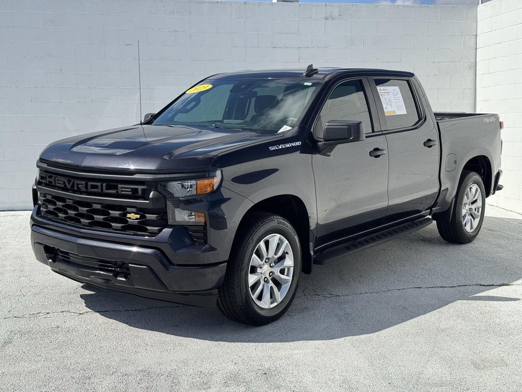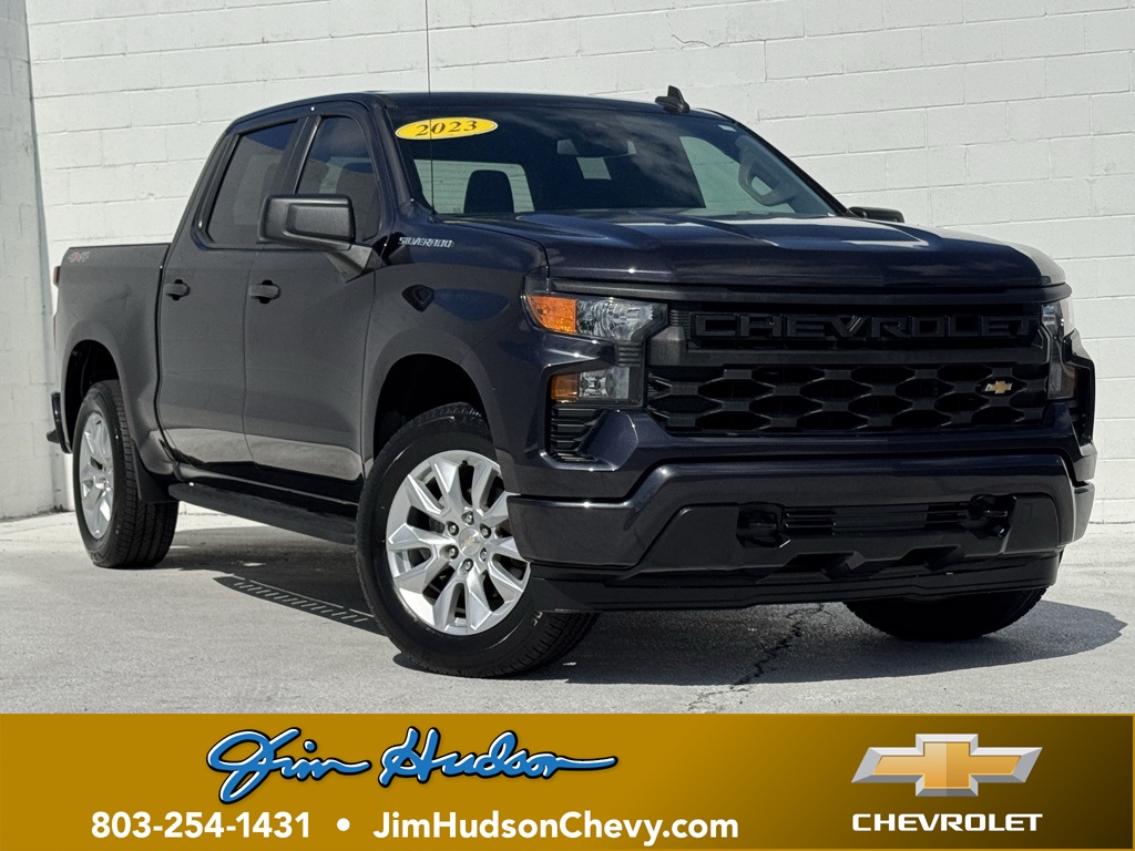 - Jim Hudson Chevrolet is proud to present you with another True Market Priced Pre-Owned Vehicle. This 2023 Chevrolet Silverado 1500 Custom is loaded with the following Factory Options:Custom Convenience Package (Electric Rear-Window Defogger, EZ Lift Power Lock & Release Tailgate, LED Cargo Area Lighting, Remote Vehicle Starter System, and Theft Deterrent System (Unauthorized Entry)), Custom Value Package, High Capacity Suspension Package, Preferred Equipment Group 1CX (10-Way Power Driver Seat w/Lumbar, 120-Volt Bed Mounted Power Outlet, 120-Volt Instrument Panel Power Outlet, 3.5" Monochromatic Display Driver Info Center, Bluetooth® For Phone, Chevrolet Connected Access Capable, Color-Keyed Carpeting Floor Covering, Compass, Deep-Tinted Glass, Dual Rear USB Ports (Charge Only), Electrical Steering Column Lock, Electronic Cruise Control, Front Frame-Mounted Black Recovery Hooks, Front Rubberized Vinyl Floor Mats, HD Rear Vision Camera, Manual Tilt Wheel Steering Column, OnStar & Chevrolet Connected Services Capable, Power Front Windows w/Driver Express Up/Down, Power Front Windows w/Passenger Express Down, Power Rear Windows w/Express Down, Rear 60/40 Folding Bench Seat (Folds Up), Rear Rubberized-Vinyl Floor Mats, Remote Keyless Entry, SiriusXM Radio, Standard Tailgate, Wi-Fi Hot Spot Capable, and Wireless Phone Projection), Trailering Package (Hitch Guidance), 8-Speed Automatic, 4WD, Black Cloth, Apple CarPlay/Android Auto, Auto High-beam Headlights, Automatic Emergency Braking, Lane Keep Assist w/Lane Departure Warning, Multi-Flex Tailgate, Power driver seat, Remote keyless entry, 3.42 Rear Axle Ratio, 4-Wheel Disc Brakes, 40/20/40 Front Split-Bench Seat, 6 Speakers, 6-Speaker Audio System, ABS brakes, Air Conditioning, Alloy wheels, AM/FM radio: SiriusXM, Brake assist, Bumpers: body-color, Cloth Seat Trim, Delay-off headlights, Driver door bin, Driver vanity mirror, Dual front impact airbags, Dual front side impact airbags, Electronic Stability Control, Following Distance Indicator, Forward Collision Alert, Front anti-roll bar, Front Center Armrest w/Storage, Front Pedestrian Braking, Front reading lights, Front wheel independent suspension, Fully automatic headlights, Heated door mirrors, Illuminated entry, IntelliBeam Automatic High Beam On/Off, Low tire pressure warning, Not Equipped w/Functional Cab & Bed Power Outlets, Not Equipped w/Rear USB Ports, Not Equipped w/Steering Column Lock, Occupant sensing airbag, Outside temperature display, Overhead airbag, Overhead console, Panic alarm, Passenger door bin, Passenger vanity mirror, Power door mirrors, Power steering, Power windows, Premium audio system: Chevrolet Infotainment 3, Radio data system, Radio: Chevrolet Infotainment 3 System, Rear reading lights, Rear step bumper, Rear window defroster, Security system, Speed control, Speed-sensing steering, Split folding rear seat, Tachometer, Tilt steering wheel, Traction control, Trip computer, Variably intermittent wipers, Voltmeter, and Wheels: 20" x 9" Bright Silver Painted Aluminum Visit www.FuelEconomy.gov to get current fuel economy ratings for this vehicle.Clean CARFAX. Odometer is 5497 miles below market average! CARFAX One-Owner.2023 Chevrolet Silverado 1500 Custom One Owner, 8-Speed Automatic, 4WD, Black Cloth, 10-Way Power Driver Seat w/Lumbar, 120-Volt Bed Mounted Power Outlet, 120-Volt Instrument Panel Power Outlet, 3.5" Monochromatic Display Driver Info Center, Apple CarPlay/Android Auto, Auto High-beam Headlights, Automatic Emergency Braking, Bluetooth® For Phone, Chevrolet Connected Access Capable, Color-Keyed Carpeting Floor Covering, Compass, Custom Convenience Package, Custom Value Package, Deep-Tinted Glass, Dual Rear USB Ports (Charge Only), Electric Rear-Window Defogger, Electrical Steering Column Lock, Electronic Cruise Control, EZ Lift Power Lock & Release Tailgate, Front Frame-Mounted Black Recovery Hooks, Front Rubberized Vinyl Floor Mats, HD Rear Vision Camera, High Capacity Suspension Pac