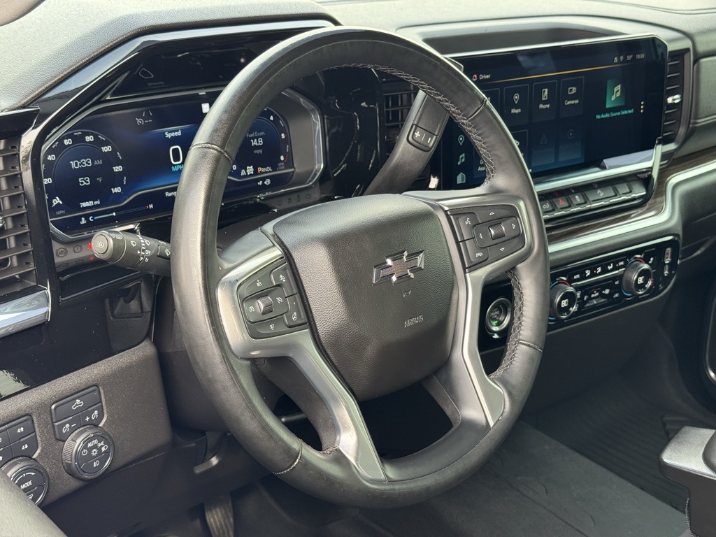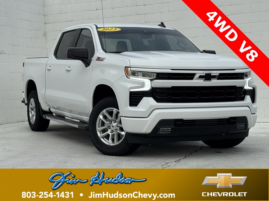 - Jim Hudson Chevrolet is proud to present you with another True Market Priced Pre-Owned Vehicle. This 2023 Chevrolet Silverado 1500 RST is loaded with the following Factory Options:Convenience Package (10-Way Power Driver Seat w/Lumbar, 120-Volt Bed Mounted Power Outlet, 120-Volt Instrument Panel Power Outlet, Dual Rear USB Ports (Charge Only), Dual-Zone Automatic Climate Control, Electric Rear-Window Defogger, Heated Driver & Front Outboard Passenger Seats, Heated Steering Wheel, Keyless Open & Start, Remote Vehicle Starter System, Theft Deterrent System (Unauthorized Entry), and Wrapped Steering Wheel), Preferred Equipment Group 1SP (12.3" Multicolor Reconfigurable Digital Display, 6-Speaker Audio System, All-Star Edition, Auto-Locking Rear Differential, Bluetooth® For Phone, Chevrolet Connected Access Capable, Color-Keyed Carpeting Floor Covering, Compass, Deep-Tinted Glass, Electrical Steering Column Lock, Electronic Cruise Control, EZ Lift Power Lock & Release Tailgate, Front Frame-Mounted Black Recovery Hooks, Front LED Fog Lamps, Front Rubberized Vinyl Floor Mats, HD Rear Vision Camera, Heated Power-Adjustable Outside Mirrors, High Gloss Black Mirror Caps, Inside Rear-View Mirror w/Tilt, LED Cargo Area Lighting, OnStar & Chevrolet Connected Services Capable, Power Front Windows w/Driver Express Up/Down, Power Front Windows w/Passenger Express Down, Power Rear Windows w/Express Down, Rear 60/40 Folding Bench Seat (Folds Up), Rear Rubberized-Vinyl Floor Mats, SiriusXM w/360L, Standard Tailgate, Steering Wheel Audio Controls, Wi-Fi Hot Spot Capable, and Wireless Phone Projection), Protection Package (Chevytec Spray-On Black Bedliner and Rear Wheelhouse Liners), Trailering Package (Hitch Guidance), Z71 Off-Road & Protection Package (All-Weather Floor Liner (LPO) (AAK)), Z71 Off-Road Package (Dual Exhaust w/Polished Outlets, Heavy-Duty Air Filter, Hill Descent Control, and Off-Road Suspension), Standard Suspension Package, 10-Speed Automatic, 4WD, Black Cloth, Apple CarPlay/Android Auto, Automatic Emergency Braking, Following Distance Indicator, Forward Collision Alert, Fully automatic headlights, Heated front seats, Heated steering wheel, Lane Keep Assist w/Lane Departure Warning, 220 Amp Alternator, 3.23 Rear Axle Ratio, 4-Wheel Disc Brakes, 40/20/40 Front Split-Bench Seat, 6 Speakers, ABS brakes, Air Conditioning, Alloy wheels, AM/FM radio: SiriusXM with 360L, Auto High-beam Headlights, Automatic temperature control, Brake assist, Bumpers: body-color, Cloth Seat Trim, Delay-off headlights, Driver door bin, Driver vanity mirror, Dual front impact airbags, Dual front side impact airbags, Electronic Stability Control, Front anti-roll bar, Front Center Armrest w/Storage, Front dual zone A/C, Front fog lights, Front Pedestrian Braking, Front reading lights, Front wheel independent suspension, Heated door mirrors, Illuminated entry, IntelliBeam Automatic High Beam On/Off, Low tire pressure warning, Not Equipped w/Steering Column Lock, Occupant sensing airbag, Outside temperature display, Overhead airbag, Overhead console, Panic alarm, Passenger door bin, Passenger vanity mirror, Power door mirrors, Power driver seat, Power steering, Power windows, Premium audio system: Chevrolet Infotainment 3 Premium, Radio data system, Radio: Chevrolet Infotainment 3 Premium System, Rear reading lights, Rear step bumper, Rear window defroster, Remote keyless entry, Security system, Speed control, Speed-sensing steering, Split folding rear seat, Steering wheel mounted audio controls, Tachometer, Telescoping steering wheel, Tilt steering wheel, Traction control, Trip computer, Variably intermittent wipers, Voltmeter, and Wheels: 18" x 8.5" Bright Silver Painted Aluminum Visit www.FuelEconomy.gov to get current fuel economy ratings for this vehicle.Clean CARFAX. CARFAX One-Owner.2023 Chevrolet Silverado 1500 RST One Owner, 10-Speed Automatic, 4WD, Black Cloth, 10-Way Power Driver Seat w/Lumbar, 12.3" Multicolor Reconfigurable Digital Displa
