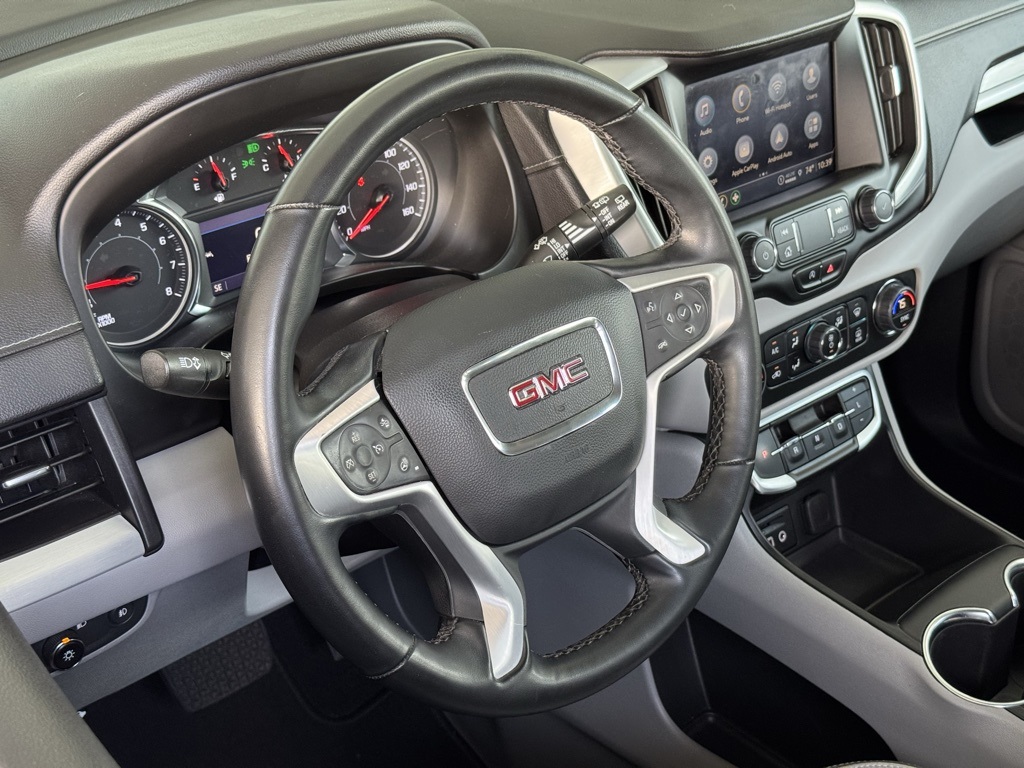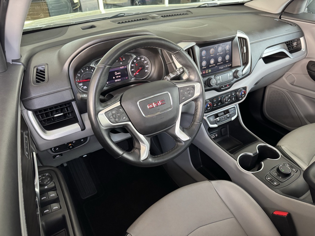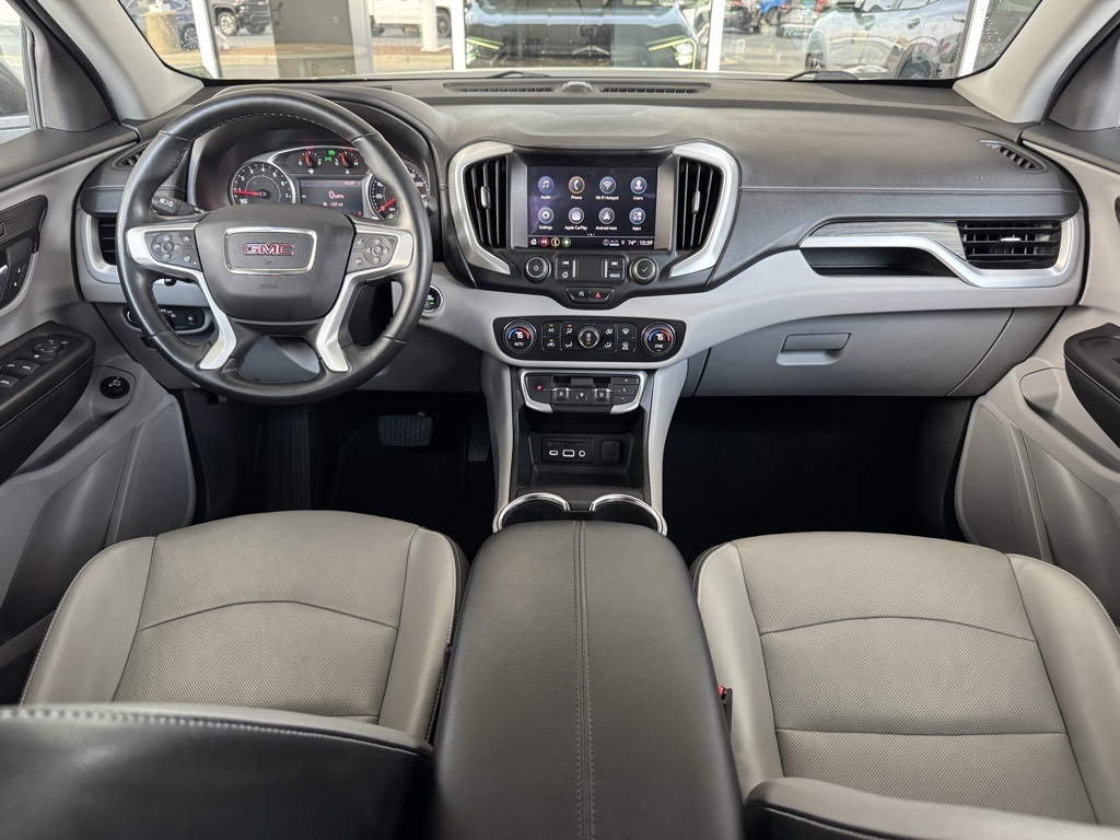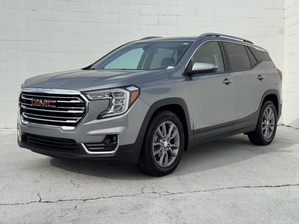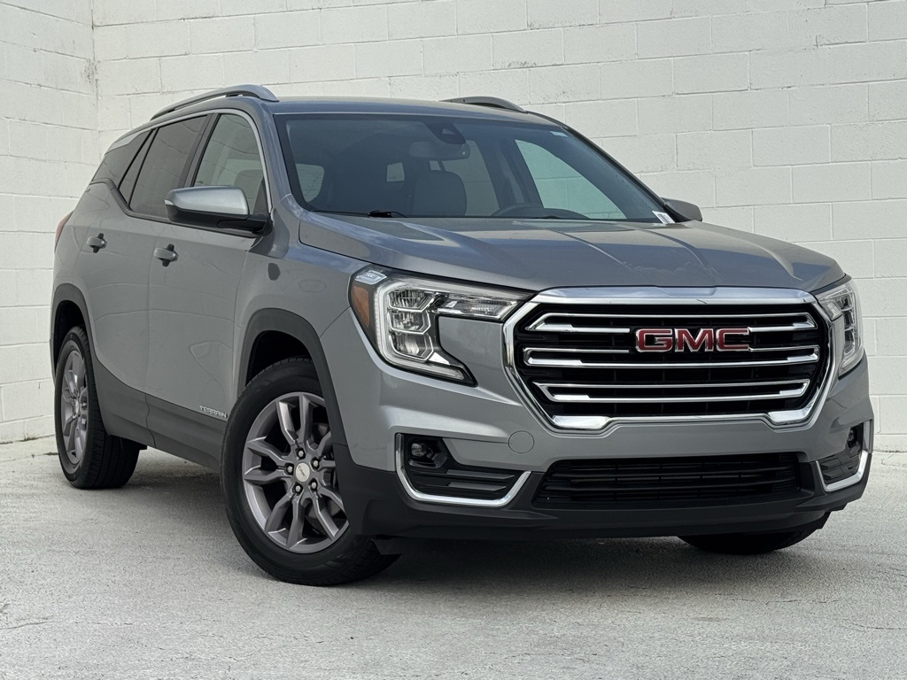 - Jim Hudson Chevrolet is proud to present you with another True Market Priced Pre-Owned Vehicle. This 2023 GMC Terrain SLT is loaded with the following Factory Options:Preferred Equipment Group 4SA, License Plate Front Mounting Package, 2 USB Data Ports, 2 USB Data Ports w/SD Card Reader, 6-Speaker Audio System Feature, Automatic temperature control, Bluetooth® For Phone, Fully automatic headlights, Power Liftgate, Radio: GMC Infotainment Audio System w/8" Display, SiriusXM Radio, Wireless Apple CarPlay/Wireless Android Auto, 3.47 Axle Ratio, 4-Wheel Disc Brakes, 6 Speakers, 6-Way Power Front Passenger Seat, 8-Way Power Driver Seat Adjuster, ABS brakes, Air Conditioning, Alloy wheels, AM/FM radio: SiriusXM, Auto High-beam Headlights, Auto-dimming Rear-View mirror, Brake assist, Bumpers: body-color, Compass, Delay-off headlights, Deleted 3 Years of OnStar & Connected Services Plan, Driver & Front Passenger Heated Seats, Driver door bin, Driver vanity mirror, Dual front impact airbags, Dual front side impact airbags, Electronic Stability Control, Emergency communication system: OnStar and GMC connected services capable, Four wheel independent suspension, Front anti-roll bar, Front Bucket Seats, Front Center Armrest, Front dual zone A/C, Front fog lights, Front Passenger 2-Way Power Lumbar, Front reading lights, Garage door transmitter, Heated door mirrors, Heated front seats, Heated steering wheel, Illuminated entry, Low tire pressure warning, Memory seat, Occupant sensing airbag, Outside temperature display, Overhead airbag, Overhead console, Panic alarm, Passenger door bin, Passenger vanity mirror, Perforated Leather-Appointed Seat Trim, Power door mirrors, Power Driver Lumbar Control, Power driver seat, Power passenger seat, Power steering, Power windows, Radio data system, Rear anti-roll bar, Rear seat center armrest, Rear window defroster, Rear window wiper, Remote keyless entry, Roof rack: rails only, Security system, Speed control, Speed-sensing steering, Split folding rear seat, Spoiler, Steering wheel mounted audio controls, Tachometer, Telescoping steering wheel, Tilt steering wheel, Traction control, Trip computer, Turn signal indicator mirrors, Variably intermittent wipers, and Wheels: 18" x 7" Silver Painted Aluminum Visit www.FuelEconomy.gov to get current fuel economy ratings for this vehicle.2023 GMC Terrain SLT Local Trade, 2 USB Data Ports, 2 USB Data Ports w/SD Card Reader, 6-Speaker Audio System Feature, Automatic temperature control, Bluetooth® For Phone, Fully automatic headlights, Power Liftgate, Preferred Equipment Group 4SA, Radio: GMC Infotainment Audio System w/8" Display, SiriusXM Radio, Wireless Apple CarPlay/Wireless Android Auto.For a complete listing of current fuel economy standards please visit www.fueleconomy.gov.
