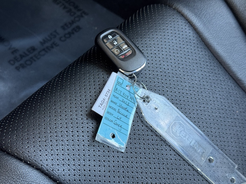 - Clean CARFAX. CARFAX One-Owner.2023 Honda Accord LX Clean CarFax, Local Trade, One Owner, Well Maintained, 4-Wheel Disc Brakes, ABS brakes, Adaptive Cruise Control: Adaptive Cruise Control (ACC) with Low-Speed Follow, Alloy wheels, Apple CarPlay/Android Auto, Auto High-beam Headlights, Automatic temperature control, Dual front impact airbags, Dual front side impact airbags, Emergency communication system: HondaLink Assist, Exterior Parking Camera Rear, Front anti-roll bar, Knee airbag, Lane departure: Lane Keeping Assist System (LKAS) active, Low tire pressure warning, Occupant sensing airbag, Overhead airbag, Radio: 160-Watt AM/FM Audio System, Rear anti-roll bar, Rear side impact airbag, Remote keyless entry, Speed-sensing steering, Speed-Sensitive Wipers, Steering wheel mounted audio controls, Wheels: 17" x 7.5" Blade Silver.