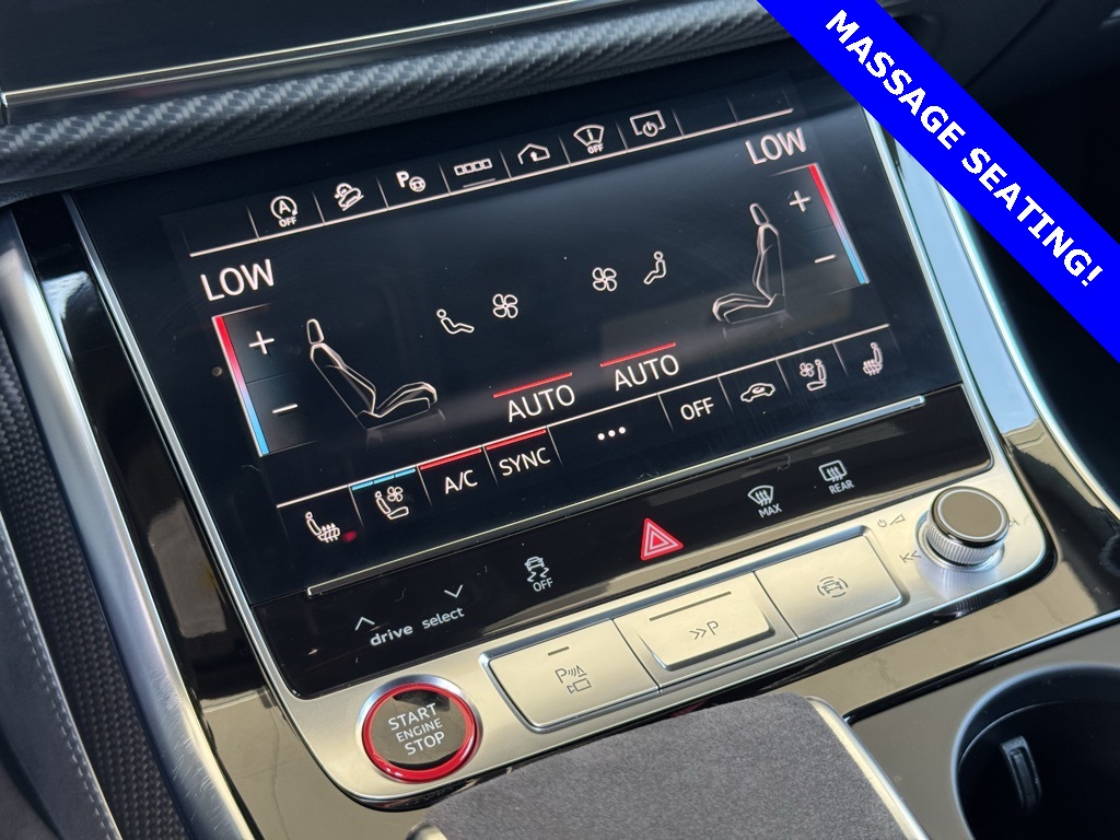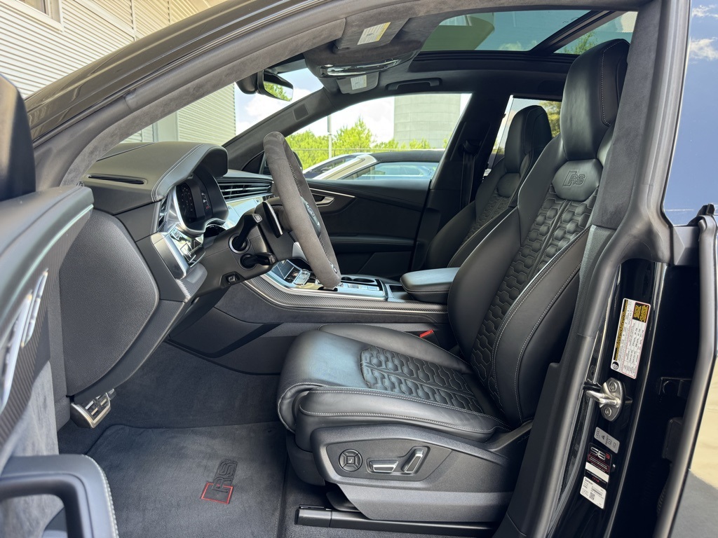 - 2024 Audi RS Q8 4.0T Clean CarFax, Local Trade, Well Maintained, 17 Speakers, 4-Wheel Disc Brakes, ABS brakes, Adaptive suspension, Alcantara Steering Wheel, Alloy wheels, Auto High-beam Headlights, Auto-leveling suspension, Automatic temperature control, Bang & Olufsen Premium Sound System w/3D Sound, Black Dinamica Headliner, Black Exterior Trim, Black Mirror Housings, Black Optic Package, Black Roof Rails, Black Seat Belts w/Gray Edge, Carbon Mask & Front Bumper Inlays, Carbon Mirror Housings, Carbon Package, Carbon Rear Bumper Inlay, Carbon Rear Lighting Strip, Dual front impact airbags, Dual front side impact airbags, Dual-Pane Acoustic Glass for Side Windows, Emergency communication system: Audi connect CARE, Executive Package, Exterior Parking Camera Rear, Front anti-roll bar, Front dual zone A/C, Fully automatic headlights, Garage door transmitter: HomeLink, Head-Up Display, Heated & Ventilated Sports Seats Plus, Heated Rear Seats, Intersection Assist, Leather Package (Armrests, Console), Low tire pressure warning, Luxury Package, Massage Function for Front Seats, Occupant sensing airbag, Overhead airbag, Perforated Valcona Leather Seating Surfaces, Power Liftgate, Power moonroof: Panoramic, Power Soft-Closing Doors, Radio: MMI Navigation Plus, Rain sensing wipers, Rear anti-roll bar, Rear dual zone A/C, Rear side impact airbag, Remote Park Assist Plus, RS Design Package - Gray, RS Logo Floor Mats w/Gray Contrast Stitching, Speed-sensing steering, Sport Exhaust System, Steering wheel memory, Steering wheel mounted audio controls, Traffic Sign Recognition, Ventilated front seats, Wheels: 23" Audi Sport 5 Y-Spoke Rotor Design, Air Conditioning, AM/FM radio: SiriusXM w/ 360L, Auto-dimming door mirrors, Auto-dimming Rear-View mirror, Brake assist, Bumpers: body-color, Compass, Delay-off headlights, Driver door bin, Driver vanity mirror, Electronic Stability Control, Four wheel independent suspension, Front Bucket Seats, Front Center Armrest, Front fog lights, Front reading lights, Headlight cleaning, Heated door mirrors, Heated front seats, Heated steering wheel, Illuminated entry, Leather Shift Knob, Leather steering wheel, Memory seat, Navigation system: Audi MMI Navigation plus with Touch Response, Outside temperature display, Overhead console, Panic alarm, Passenger door bin, Passenger vanity mirror, Power door mirrors, Power driver seat, Power passenger seat, Power steering, Power windows, Radio data system, Rear air conditioning, Rear fog lights, Rear reading lights, Rear seat center armrest, Rear Window Blind, Rear window defroster, Rear window wiper, Remote keyless entry, Security system, Speed control, Split folding rear seat, Spoiler, Tachometer, TBD Axle Ratio, Telescoping steering wheel, Tilt steering wheel, Traction control, Trip computer, Turn signal indicator mirrors, Variably intermittent wipers, 17 Speakers, 4-Wheel Disc Brakes, ABS brakes, Adaptive suspension, Alcantara Steering Wheel, Alloy wheels, Auto High-beam Headlights, Auto-leveling suspension, Automatic temperature control, Bang & Olufsen Premium Sound System w/3D Sound, Black Dinamica Headliner, Black Exterior Trim, Black Mirror Housings, Black Optic Package, Black Roof Rails, Black Seat Belts w/Gray Edge, Carbon Mask & Front Bumper Inlays, Carbon Mirror Housings, Carbon Package, Carbon Rear Bumper Inlay, Carbon Rear Lighting Strip, Dual front impact airbags, Dual front side impact airbags, Dual-Pane Acoustic Glass for Side Windows, Emergency communication system: Audi connect CARE, Executive Package, Exterior Parking Camera Rear, Front anti-roll bar, Front dual zone A/C, Fully automatic headlights, Garage door transmitter: HomeLink, Head-Up Display, Heated & Ventilated Sports Seats Plus, Heated Rear Seats, Intersection Assist, Leather Package (Armrests, Console), Low tire pressure warning, Luxury Package, Massage Function for Front Seats, Occupant sensing airbag, Overhead airbag, Perforated Valcona Leather Seating Surfaces, Power Liftgate, Power