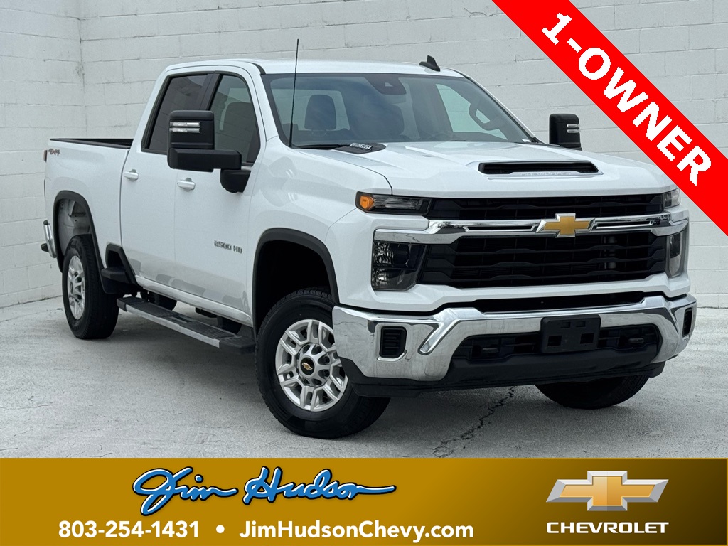 - Jim Hudson Chevrolet is proud to present you with another True Market Priced Pre-Owned Vehicle. This 2024 Chevrolet Silverado 2500HD LT is loaded with the following Factory Options:Preferred Equipment Group 1LT (170 Amp Alternator, 2-Speed Electronic Shift Transfer Case, 4-Way Manual Driver Seat Adjuster, Black Mirror Caps, Bluetooth® For Phone, Chevrolet Connected Access Capable, Color-Keyed Carpeting Floor Covering, Compass, Deep-Tinted Glass, Electronic Cruise Control w/Set & Resume Speed, EZ Lift Power Lock & Release Tailgate, Front Rubberized Vinyl Floor Mats, Halogen Reflector Headlamps, HD Rear Vision Camera, Heated Vertical Trailering Mirrors, Keyless Open & Start, Manual Tilt-Wheel Steering Column, OnStar & Chevrolet Connected Services Capable, Power Door Locks, Power Front Windows w/Driver Express Up/Down, Power Front Windows w/Passenger Express Down, Power Rear Windows w/Express Down, Push Button Start, Rear 60/40 Folding Bench Seat (Folds Up), Rear Rubberized Vinyl Floor Mats, SiriusXM w/360L, Standard Tailgate, Steering Wheel Audio Controls, Wi-Fi Hotspot Capable, Wireless Phone Projection, and Wrapped Steering Wheel), Suspension Package, 10-Speed Automatic, 4WD, Black Cloth, Apple CarPlay/Android Auto, 17" Machined Aluminum Wheels, 3.73 Rear Axle Ratio, 4-Wheel Disc Brakes, 6 Speakers, 6-Speaker Audio System, 6" Rectangular Chromed Tubular Assist Steps, 720 Cold-Cranking Amps Heavy-Duty Battery, ABS brakes, Air Conditioning, Alloy wheels, AM/FM radio: SiriusXM with 360L, Auto High-beam Headlights, Brake assist, Bumpers: chrome, Cloth Seat Trim, Delay-off headlights, Deleted 3 Years of Remote Access, Driver door bin, Driver vanity mirror, Dual front impact airbags, Dual front side impact airbags, Durabed Pickup Bed, Electronic Stability Control, Front 40/20/40 Split-Bench Seats w/Lockable Storage, Front anti-roll bar, Front Center Armrest w/Storage, Front License Plate Kit, Front reading lights, Front wheel independent suspension, Fully automatic headlights, Heated door mirrors, Illuminated entry, Low tire pressure warning, Occupant sensing airbag, Outside temperature display, Overhead airbag, Overhead console, Panic alarm, Passenger door bin, Passenger vanity mirror, Power door mirrors, Power steering, Power windows, Premium audio system: Chevrolet Infotainment 3 Premium, Radio: Chevrolet Infotainment 3 Premium System, Rear reading lights, Rear step bumper, Remote keyless entry, Speed control, Split folding rear seat, Steering wheel mounted audio controls, Tachometer, Tilt steering wheel, Traction control, Trip computer, Turn signal indicator mirrors, Variably intermittent wipers, and Voltmeter Visit www.FuelEconomy.gov to get current fuel economy ratings for this vehicle.Clean CARFAX. Odometer is 21772 miles below market average! CARFAX One-Owner.2024 Chevrolet Silverado 2500HD LT Clean CarFax, One Owner, 10-Speed Automatic, 4WD, Black Cloth, Apple CarPlay/Android Auto.For a complete listing of current fuel economy standards please visit www.fueleconomy.gov.