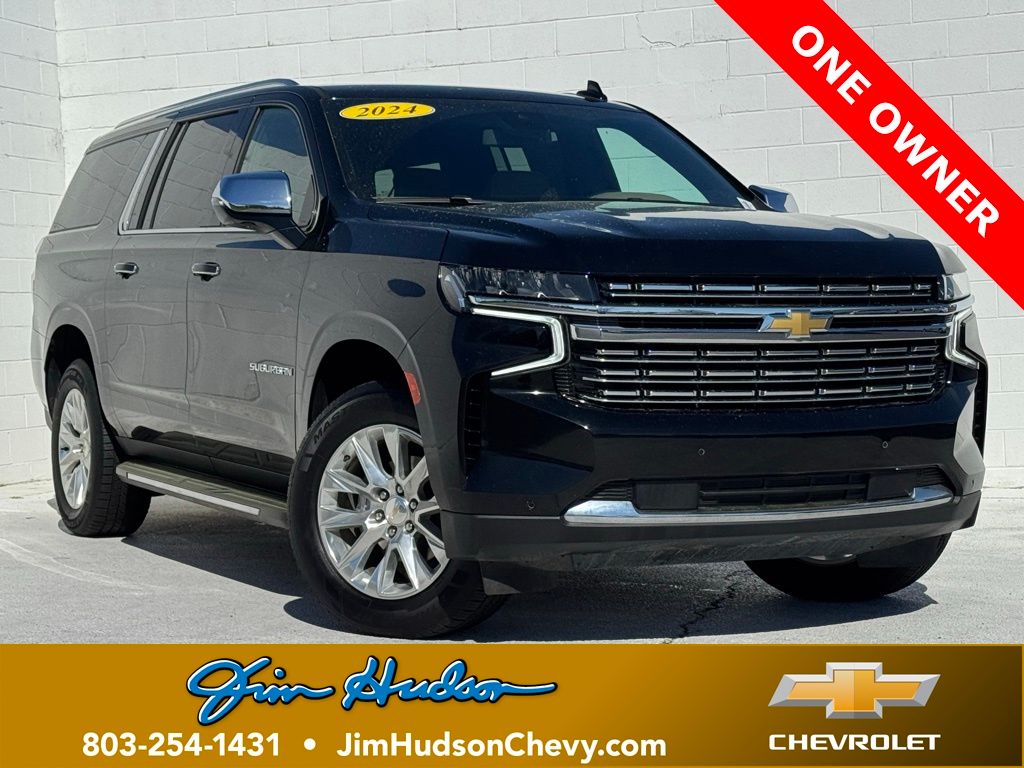 - Jim Hudson Chevrolet is proud to present you with another True Market Priced Pre-Owned Vehicle. This 2024 Chevrolet Suburban Premier is loaded with the following Factory Options:Preferred Equipment Group 1LZ (12-Way Power Driver & Passenger Seat Adjusters, 1st & 2nd Row Color-Keyed Carpeted Floor Mats, 2-Speed Active Electronic AutoTrac Transfer Case, 3rd Row 60/40 Power-Folding Split-Bench, Auto-Dimming Inside Rear-View Mirror, Bose 10-Speaker Surround w/CenterPoint, Bright Front & Rear Door Sill Plates, Chrome Door Handles w/Body-Color Strip, Chrome Mirror Caps, Color-Keyed Carpeting Floor Covering, Driver & Front Outboard Passenger Airbags, Dual Exhaust System, Enhanced Driver Information Center, Floor Console, Hands-Free Rear Power Programmable Liftgate, Heated 2nd Row Outboard Seats, Heated Driver & Front Passenger Seats, Heated Steering Wheel, Hill Descent Control, Infotainment Display, Lane Change Alert w/Side Blind Zone Alert, LED Daytime Running Lamps, Memory Settings, Outside Heated Power-Adjustable Mirrors, Perforated Heated & Ventilated Seats, Power Release 2nd Row Bucket Seats, Power Tilt & Telescopic Steering Column, Rear Cross Traffic Alert, Remote Start, Safety Alert Seat, SiriusXM w/360L, Universal Home Remote, Wireless Charging, and Wrapped Steering Wheel), Apple CarPlay/Android Auto, Auto High-beam Headlights, Auto-leveling suspension, Navigation System, Power Liftgate, 10 Speakers, 20" x 9" Polished Aluminum Wheels, 2nd Row Pwr Release 60/40 Split-Folding Bench Seat, 3.23 Rear Axle Ratio, 3rd row seats: split-bench, 4-Wheel Disc Brakes, ABS brakes, Adaptive suspension, Air Conditioning, Alloy wheels, AM/FM radio: SiriusXM with 360L, Auto-dimming door mirrors, Auto-dimming Rear-View mirror, Automatic temperature control, Brake assist, Bumpers: body-color, Compass, Delay-off headlights, Deleted 3 Years of Remote Access, Driver door bin, Driver vanity mirror, Dual front impact airbags, Dual front side impact airbags, Electronic Stability Control, Emergency communication system: OnStar and Chevrolet connected services capable, Floor Console w/Storage Area, Four wheel independent suspension, Front anti-roll bar, Front Bucket Seats, Front Center Armrest, Front dual zone A/C, Front reading lights, Fully automatic headlights, Garage door transmitter, Heated door mirrors, Heated front seats, Heated rear seats, Heated steering wheel, Illuminated entry, Low tire pressure warning, Magnetic Ride Control Suspension, Memory seat, Occupant sensing airbag, Outside temperature display, Overhead airbag, Overhead console, Panic alarm, Passenger door bin, Passenger vanity mirror, Perforated Leather Seating Surfaces, Power door mirrors, Power driver seat, Power passenger seat, Power steering, Power windows, Premium audio system: Chevrolet Infotainment 3 Premium, Radio: Chevrolet Infotainment 3 Premium System, Rain sensing wipers, Rear air conditioning, Rear anti-roll bar, Rear reading lights, Rear window defroster, Rear window wiper, Remote keyless entry, Roof rack: xxxxxx, Security system, Speed control, Speed-sensing steering, Split folding rear seat, Spoiler, Steering wheel memory, Steering wheel mounted audio controls, Tachometer, Telescoping steering wheel, Tilt steering wheel, Traction control, Trip computer, Turn signal indicator mirrors, Variably intermittent wipers, Ventilated front seats, and Voltmeter Visit www.FuelEconomy.gov to get current fuel economy ratings for this vehicle.Clean CARFAX. CARFAX One-Owner.2024 Chevrolet Suburban Premier One Owner, 12-Way Power Driver & Passenger Seat Adjusters, 1st & 2nd Row Color-Keyed Carpeted Floor Mats, 2-Speed Active Electronic AutoTrac Transfer Case, 3rd Row 60/40 Power-Folding Split-Bench, Apple CarPlay/Android Auto, Auto High-beam Headlights, Auto-Dimming Inside Rear-View Mirror, Auto-leveling suspension, Bose 10-Speaker Surround w/CenterPoint, Bright Front & Rear Door Sill Plates, Chrome Door Handles w/Body-Color Strip, Chrome Mirror Caps, Color-Keyed Carpeting Floor