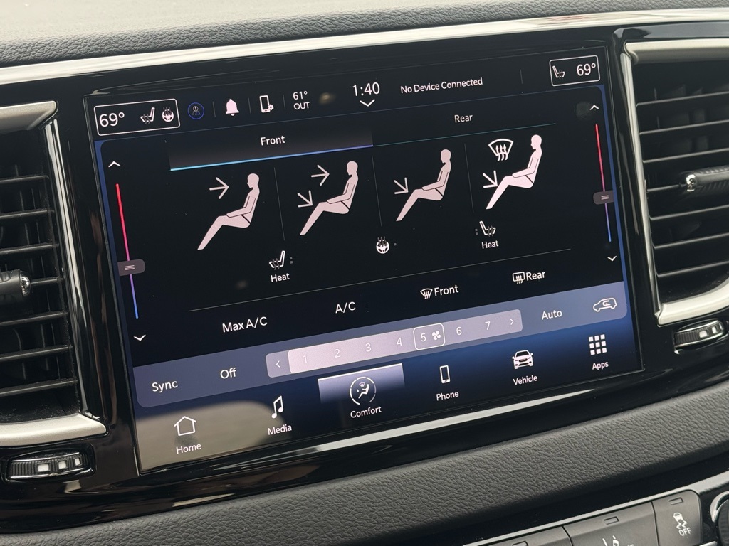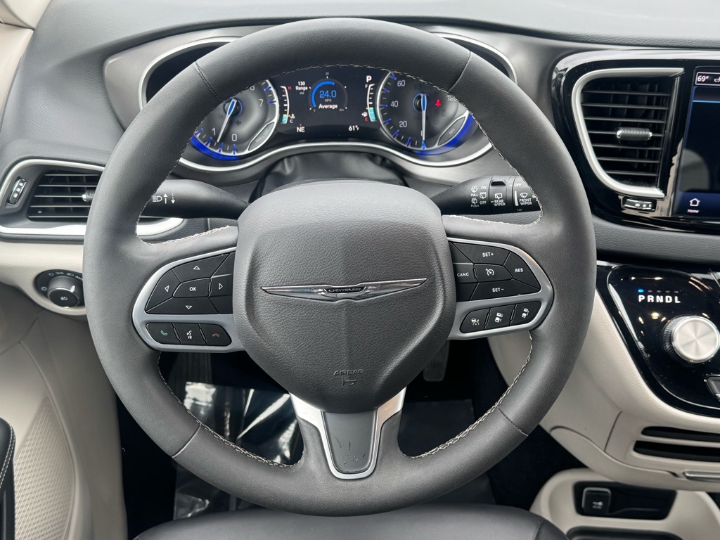 - 10.1" Touchscreen Display, 17" x 7.0" Aluminum Wheels, 3.25 Axle Ratio, 3rd row seats: split-bench, 4-Wheel Disc Brakes, 6 Speakers, ABS brakes, Air Conditioning, Alloy wheels, AM/FM radio: SiriusXM, Apple CarPlay, Apple CarPlay/Android Auto, Automatic temperature control, Black Seats, Brake assist, Bumpers: body-color, Caprice Leatherette Bucket Seats, Compass, Delay-off headlights, Disassociated Touchscreen Display, Driver door bin, Driver vanity mirror, Driver's Seat Mounted Armrest, Dual front impact airbags, Dual front side impact airbags, Electronic Stability Control, Four wheel independent suspension, Front anti-roll bar, Front Bucket Seats, Front dual zone A/C, Front fog lights, Front reading lights, Fully automatic headlights, Google Android Auto, GPS Antenna Input, Heated door mirrors, Heated front seats, Heated steering wheel, Illuminated entry, Integrated Active Noise Cancellation, Integrated Center Stack Radio, Knee airbag, Low tire pressure warning, Manufacturer's Statement of Origin, Memory seat, Occupant sensing airbag, Outside temperature display, Overhead airbag, Overhead console, Panic alarm, ParkView Rear Back-Up Camera, Passenger door bin, Passenger seat mounted armrest, Passenger vanity mirror, Power door mirrors, Power driver seat, Power Liftgate, Power steering, Power windows, Quick Order Package 27L, Radio data system, Radio: Uconnect 5 w/10.1" Display, Rain sensing wipers, Rear air conditioning, Rear reading lights, Rear window defroster, Rear window wiper, Reclining 3rd row seat, Remote keyless entry, Security system, Speed control, Split folding rear seat, Spoiler, Steering wheel mounted audio controls, Tachometer, Telescoping steering wheel, Tilt steering wheel, Touring Suspension, Traction control, Trip computer, Turn signal indicator mirrors, USB Host Flip, Variably intermittent wipers, Voltmeter.2024 Chrysler Pacifica Touring L