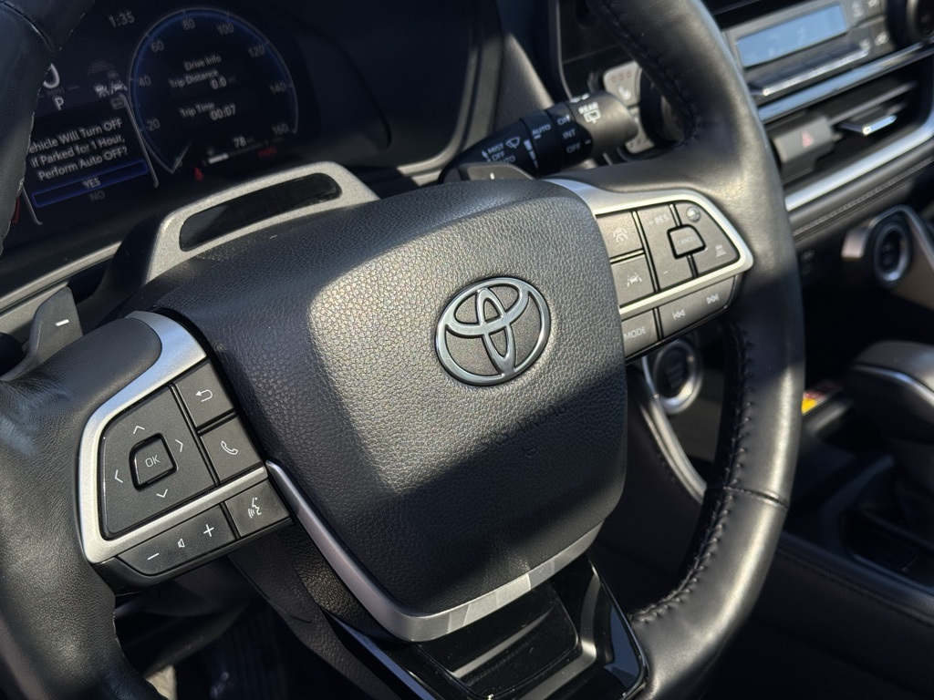 - Toyota Gold Certified Certified, 11 Speakers, 3.33 Axle Ratio, 3rd row seats: split-bench, 4-Wheel Disc Brakes, ABS brakes, Air Conditioning, Alloy wheels, AM/FM radio: SiriusXM, Apple CarPlay/Android Auto, Auto High-beam Headlights, Auto-dimming Rear-View mirror, Automatic temperature control, Brake assist, Bumpers: body-color, Chrome wheels, Delay-off headlights, Driver door bin, Driver vanity mirror, Dual front impact airbags, Dual front side impact airbags, Electronic Stability Control, Emergency communication system: Safety Connect (up to 10-year trial subscription), Exterior Parking Camera Rear, Four wheel independent suspension, Front anti-roll bar, Front Bucket Seats, Front Center Armrest, Front dual zone A/C, Front fog lights, Front reading lights, Fully automatic headlights, Garage door transmitter: HomeLink, Heads-Up Display, Heated & Ventilated Front Seats w/Memory, Heated door mirrors, Heated front seats, Heated rear seats, Heated steering wheel, Illuminated entry, Knee airbag, Leather Seat Trim, Leather Shift Knob, Leather steering wheel, Low tire pressure warning, Memory seat, Navigation system: Drive Connect Cloud Navigation (1-year trial subscription), Occupant sensing airbag, Outside temperature display, Overhead airbag, Overhead console, Panic alarm, Passenger door bin, Passenger vanity mirror, Power door mirrors, Power driver seat, Power Liftgate, Power moonroof, Power passenger seat, Power steering, Power windows, Radio: 12.3" Toyota Audio Multimedia w/JBL Premium, Rain sensing wipers, Rear air conditioning, Rear anti-roll bar, Rear reading lights, Rear window defroster, Rear window wiper, Reclining 3rd row seat, Remote keyless entry, Security system, Speed control, Speed-sensing steering, Split folding rear seat, Spoiler, Steering wheel mounted audio controls, Tachometer, Telescoping steering wheel, Tilt steering wheel, Traction control, Trip computer, Turn signal indicator mirrors, Variably intermittent wipers, Ventilated front seats, Ventilated rear seats, Wheels: 20" Clad Alloy.2024 Toyota Grand Highlander Platinum