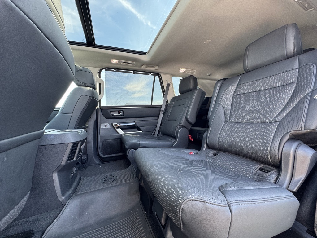 - Odometer is 6329 miles below market average!Toyota Gold Certified Certified, V6 Hybrid, 10-Speed Automatic, 4WD, 3.31 Axle Ratio, 3rd row seats: split-bench, 4-Wheel Disc Brakes, 8 Speakers, ABS brakes, Air Conditioning, Alloy wheels, AM/FM radio: SiriusXM, Anti-whiplash front head restraints, Apple CarPlay/Android Auto, Auto High-beam Headlights, Auto-dimming door mirrors, Auto-dimming Rear-View mirror, Automatic temperature control, Brake assist, Bumpers: body-color, Cast Aluminum Step & Step Cover, Delay-off headlights, Driver door bin, Driver vanity mirror, Dual front impact airbags, Dual front side impact airbags, Electronic Stability Control, Emergency communication system: Safety Connect (10-year trial), Exterior Parking Camera Rear, Front anti-roll bar, Front Bucket Seats, Front Center Armrest w/Storage, Front dual zone A/C, Front fog lights, Front reading lights, Front wheel independent suspension, Fully automatic headlights, Garage door transmitter: HomeLink, Headlight cleaning, Heated & Ventilated Front Seats, Heated door mirrors, Heated front seats, Heated steering wheel, Illuminated entry, Knee airbag, Leather Shift Knob, Leather steering wheel, Low tire pressure warning, Memory seat, Navigation system: Drive Connect (1 year trial) includes Cloud Navigation with real time traffic and Google POI, Occupant sensing airbag, Outside temperature display, Overhead airbag, Overhead console, Panic alarm, Passenger door bin, Passenger vanity mirror, Power door mirrors, Power driver seat, Power Liftgate, Power moonroof, Power passenger seat, Power steering, Power windows, Radio: Toyota Multimedia w/14" Display, Rear air conditioning, Rear reading lights, Rear seat center armrest, Rear window defroster, Rear window wiper, Reclining 3rd row seat, Remote keyless entry, Security system, SofTex Seat Trim, Speed control, Speed-sensing steering, Split folding rear seat, Spoiler, Steering wheel mounted audio controls, Tachometer, Telescoping steering wheel, Tilt steering wheel, Traction control, Trip computer, Turn signal indicator mirrors, Variably intermittent wipers, Ventilated front seats, Voltmeter, Wheels: 20" Machined-Finish Alloy, V6 Hybrid, 10-Speed Automatic, 4WD.2024 Toyota Sequoia Limited