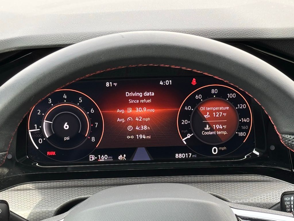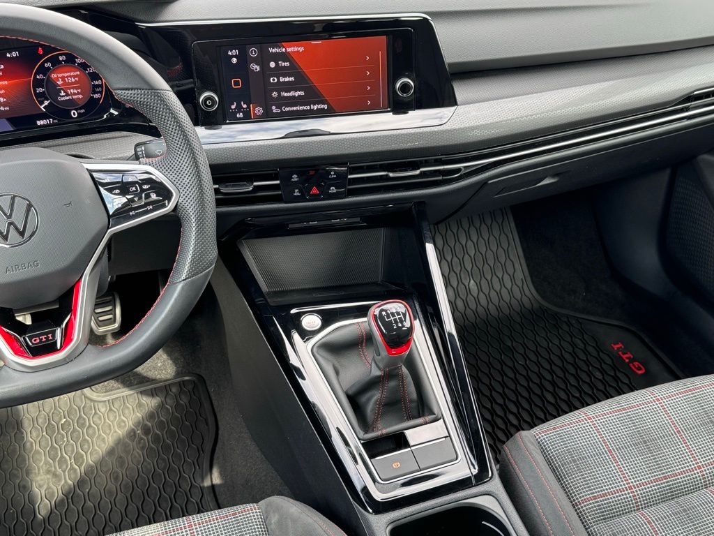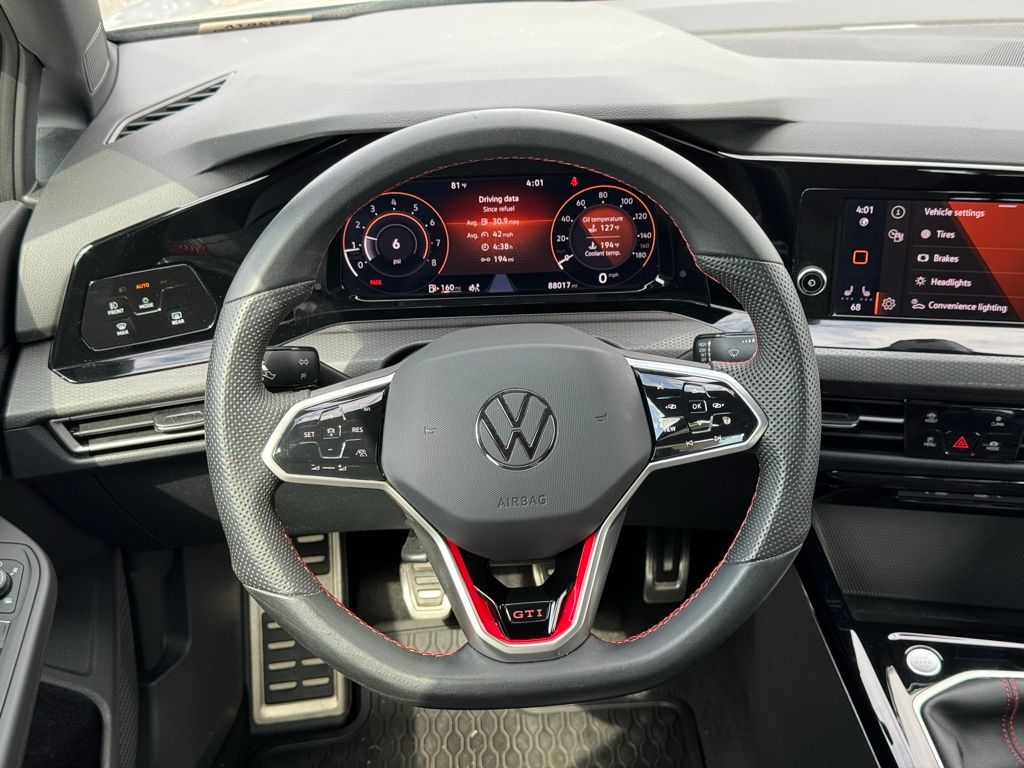 - Recent Arrival!4-Wheel Disc Brakes, 7 Speakers, ABS brakes, Adaptive suspension, Air Conditioning, Alloy wheels, AM/FM radio, Auto-dimming Rear-View mirror, Automatic temperature control, Brake assist, Bumpers: body-color, Cloth Seating Surfaces, Compass, Delay-off headlights, Driver door bin, Driver vanity mirror, Dual front impact airbags, Dual front side impact airbags, Electronic Stability Control, Emergency communication system: VW Car-Net Safe & Secure 5-year, Exterior Parking Camera Rear, Forward collision: FCW w/Autonomous Emergency Braking mitigation, Four wheel independent suspension, Front anti-roll bar, Front Bucket Seats, Front Center Armrest, Front fog lights, Front reading lights, Fully automatic headlights, Heated door mirrors, Heated front seats, Heated Front Top Sport Seats, Heated steering wheel, Illuminated entry, Lane Departure Warning System, Leather Shift Knob, Leather steering wheel, Low tire pressure warning, Occupant sensing airbag, Outside temperature display, Overhead airbag, Overhead console, Panic alarm, Passenger door bin, Passenger vanity mirror, Power door mirrors, Power driver seat, Power passenger seat, Power steering, Power windows, Radio data system, Radio: MIB3 Composition Color w/8.25" Touchscreen, Rain sensing wipers, Rear anti-roll bar, Rear reading lights, Rear seat center armrest, Rear window defroster, Rear window wiper, Remote keyless entry, Security system, Speed control, Speed-sensing steering, Speed-Sensitive Wipers, Split folding rear seat, Spoiler, Sport steering wheel, Steering wheel mounted audio controls, Tachometer, Telescoping steering wheel, Tilt steering wheel, Traction control, Trip computer, Turn signal indicator mirrors, Variably intermittent wipers, Wheels: 19" Multi-Spoke Gloss Black Painted Alloy.2024 Volkswagen Golf GTI S