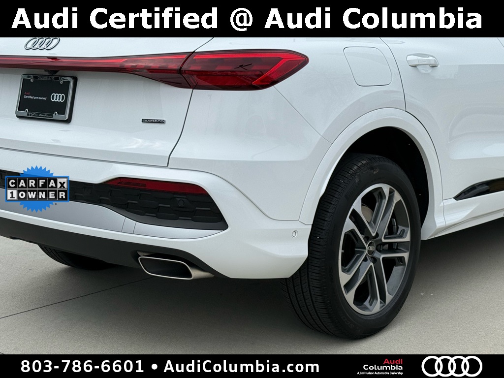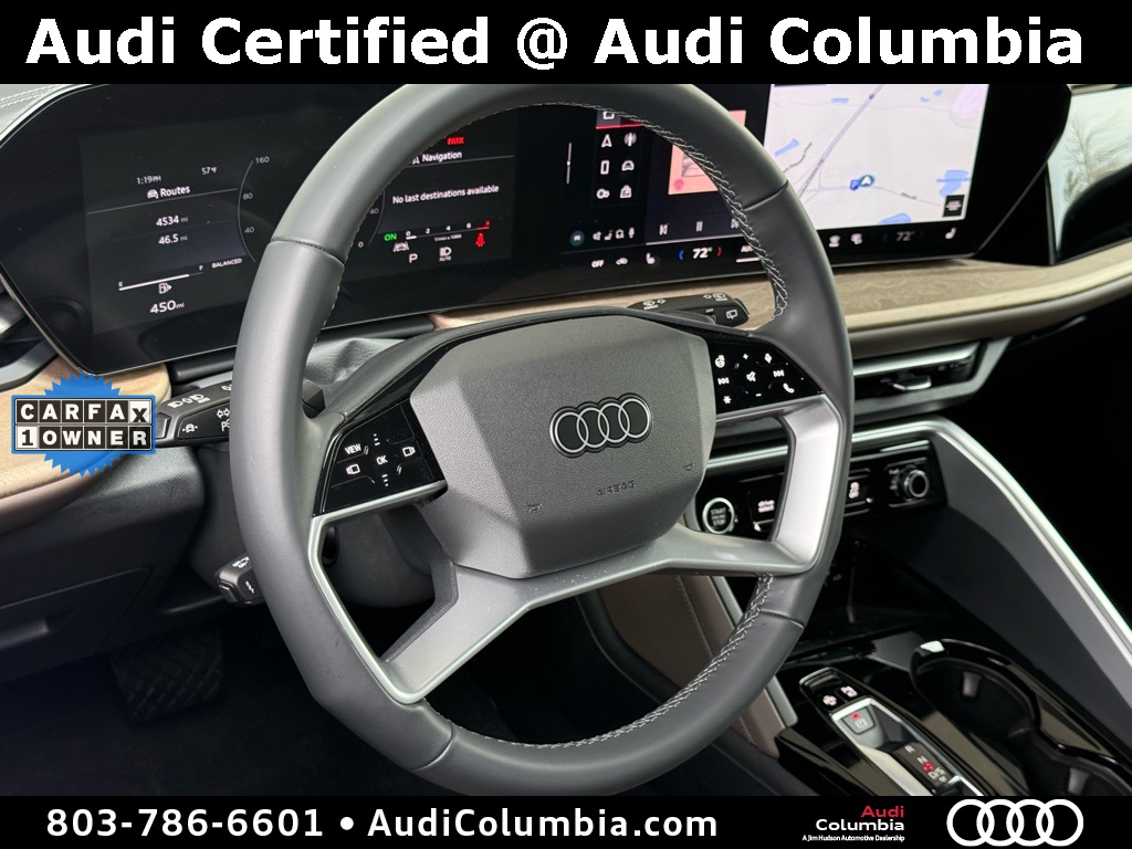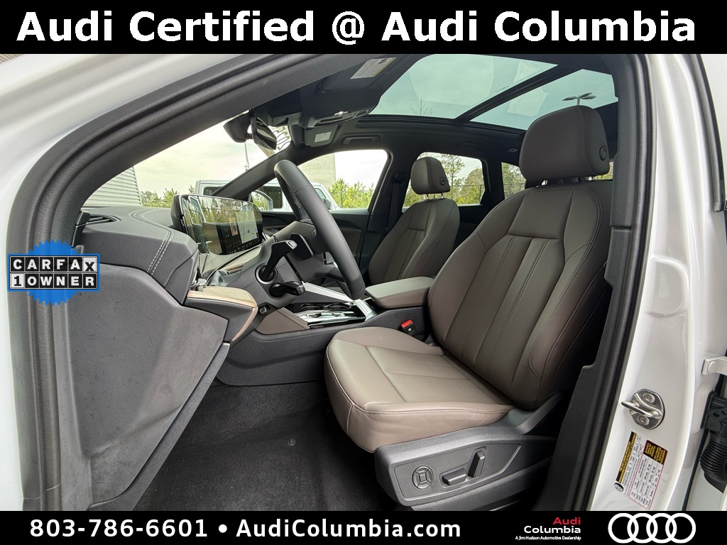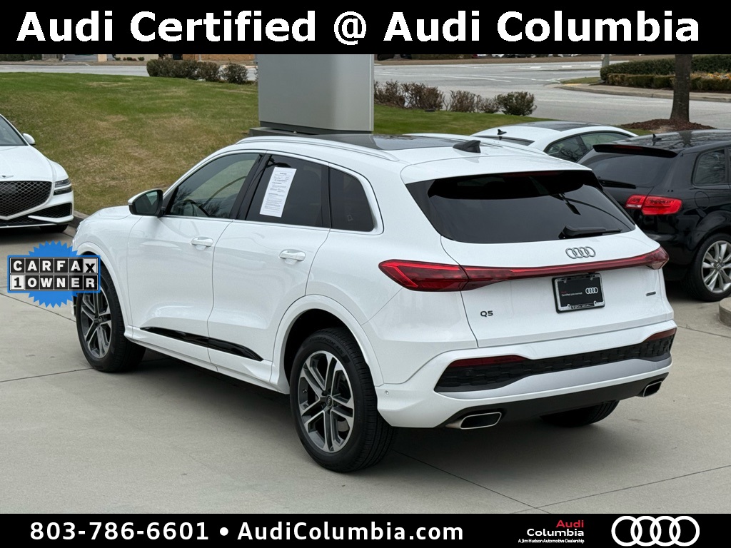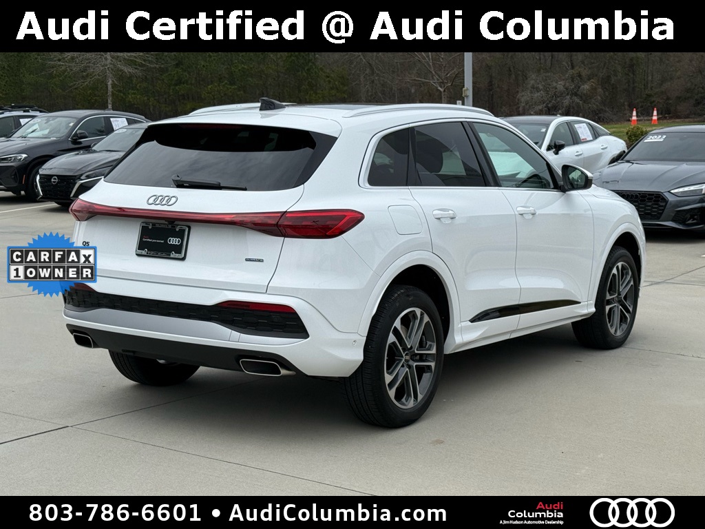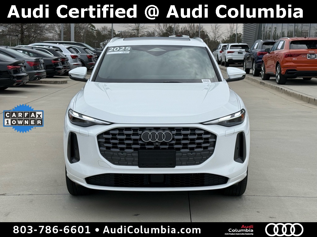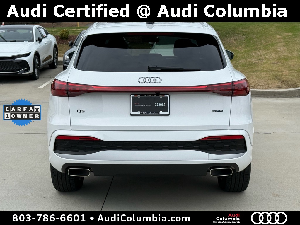 - Odometer is 766 miles below market average! Clean CARFAX. CARFAX One-Owner.2025 Audi Q5 2.0T Premium Clean CarFax, One Owner, Well Maintained, 10 Speakers, 19" Wheel Package, 4-Wheel Disc Brakes, ABS brakes, Alloy wheels, Auto High-beam Headlights, Auto-dimming Rear-View mirror, Compass, Convenience Package, Dual front impact airbags, Dual front side impact airbags, Electronic Stability Control, Emergency communication system: Audi connect CARE, Front anti-roll bar, Front dual zone A/C, Garage door transmitter: HomeLink, Heated door mirrors, Heated Front Bucket Seats, Heated Steering Wheel, Illuminated entry, Leather Seating Surfaces, Low tire pressure warning, Memory seat, Navigation System, Navigation system: Audi Navigation Plus, Occupant sensing airbag, Overhead airbag, Power Liftgate, Radio: MMI Navigation Plus, Rain sensing wipers, Rear anti-roll bar, Remote keyless entry, Speed-sensing steering, Speed-Sensitive Wipers, Steering wheel mounted audio controls, Top View Camera System, Traction control, Wheels: 19" 5-Double-Spoke Design.
