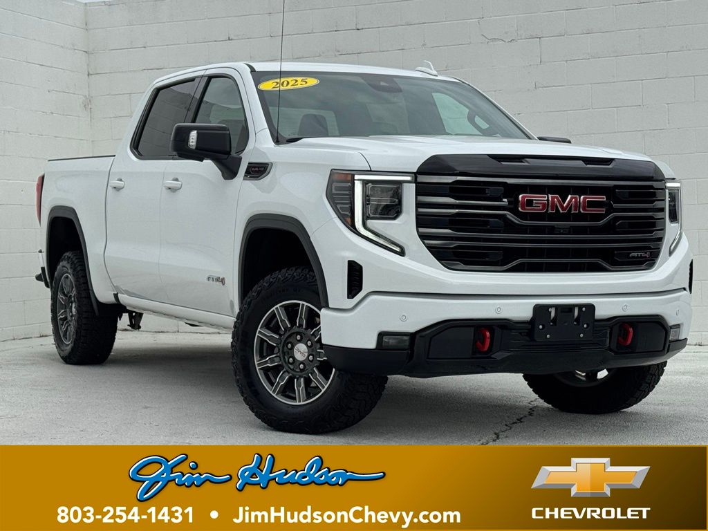 - Jim Hudson Chevrolet is proud to present you with another True Market Priced Pre-Owned Vehicle. This 2025 GMC Sierra 1500 AT4 is loaded with the following Factory Options:Preferred Equipment Group 4SB (120-Volt Bed Mounted Power Outlet, 120-Volt Interior Power Outlet, 2 Charge/Data USB Ports Inside Center Console, 2 Type-C Charge-Only Rear USB Ports, 2 USB Ports, 220 Amp Alternator, Auto-Locking Rear Differential, Black Chrome Grille Insert Bars, Color-Keyed Carpeting Floor Covering, Deep-Tinted Glass, Electric Rear-Window Defogger, Floor-Mounted Center Console, Front Prem Floor Liners w/Removable Carpet Insert, Front Rain-Sensing Wipers, HD Surround Vision, Heated 2nd Row Outboard Seats, Heated Driver & Front Outboard Passenger Seating, Heavy-Duty Air Filter, Hill Descent Control, Hitch View, In-Vehicle Trailering System App, Integrated Trailer Brake Controller, Keyless Open & Start, LED Cargo Area Lighting, OnStar Services Capable, Perimeter Lighting, Power Door Locks, Power Front Passenger Windows w/Express Up/Down, Power Front Windows w/Driver Express Up/Down, Power Rake & Telescoping Steering Column, Power Rear Windows w/Express Down, Premium Bose 7-Speaker Sound System, Push Button Start, Rear Cross Traffic Braking, Rear Pedestrian Detection, Rear Prem Floor Liners w/Removable Carpet Insert, Rear Wheelhouse Liners, Red Recovery Hooks, Remote Vehicle Starter System, SiriusXM w/360L Trial Subscription, Spray-On Pickup Bedliner w/GMC Logo, Steering Wheel Audio Controls, Theft Deterrent System (Unauthorized Entry), Trailer Camera Provisions, Trailer Side Blind Zone Alert, Ultrasonic Front & Rear Park Assist, Ventilated Driver & Front Passenger Seats, Wi-Fi Hotspot Capable, and Wireless Charging), Trailering Package (Hitch Guidance), 10-Speed Automatic, 4WD, Jet Black With Kalahari Accents Leather, Apple CarPlay/Android Auto, Lane Keep Assist w/Lane Departure Warning, Navigation System, 10-Way Power Driver Seat Adjuster w/Lumbar, 10-Way Power Passenger Seat Adjuster w/Lumbar, 170 Amp Alternator, 18" x 8.5" Machined Aluminum Wheels, 3.23 Rear Axle Ratio, 4-Wheel Disc Brakes, 7 Speakers, ABS brakes, Air Conditioning, Alloy wheels, AM/FM radio: SiriusXM with 360L, Auto High-beam Headlights, Auto-dimming door mirrors, Auto-dimming Rear-View mirror, Automatic Emergency Braking, Automatic temperature control, Auxiliary External Transmission Oil Cooler, Block heater, Brake assist, Buckle to Drive, Bumpers: body-color, Compass, Delay-off headlights, Driver door bin, Driver Memory, Driver vanity mirror, Dual Active Exhaust, Dual front impact airbags, Dual front side impact airbags, Electronic Stability Control, Emergency communication system: OnStar, External Engine Oil Cooling, Following Distance Indicator, Forward Collision Alert, Front anti-roll bar, Front Bucket Seats, Front Center Armrest, Front dual zone A/C, Front fog lights, Front License Plate Kit, Front Pedestrian Braking, Front reading lights, Front wheel independent suspension, Fully automatic headlights, Heated door mirrors, Heated front seats, Heated rear seats, Heated steering wheel, Illuminated entry, IntelliBeam Automatic High Beam On/Off, Low tire pressure warning, Memory seat, Occupant sensing airbag, Off-Road Suspension, Outside temperature display, Overhead airbag, Overhead console, Panic alarm, Passenger door bin, Passenger vanity mirror, Perforated Front Leather Seat Trim, Power door mirrors, Power driver seat, Power passenger seat, Power steering, Power windows, Radio data system, Radio: Premium GMC Infotainment Audio System, Rain sensing wipers, Rear reading lights, Rear seat center armrest, Rear step bumper, Rear window defroster, Remote keyless entry, Safety Alert Seat, Security system, Speed control, Speed-sensing steering, Split folding rear seat, Steering wheel mounted audio controls, Tachometer, Telescoping steering wheel, Tilt steering wheel, Traction control, Trip computer, Variably intermittent wipers, Ventilated front seats, Voltmeter, Wheels: 20" x