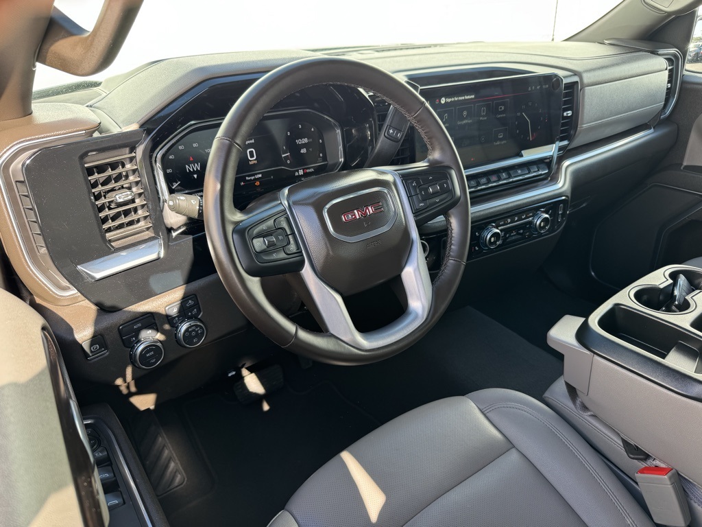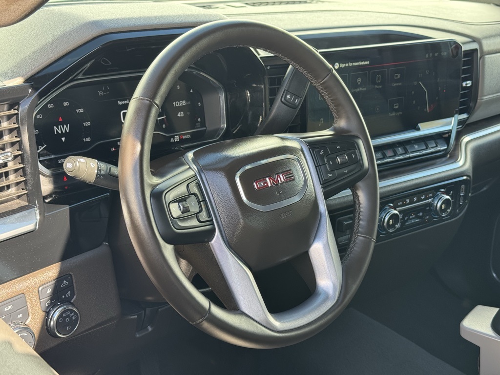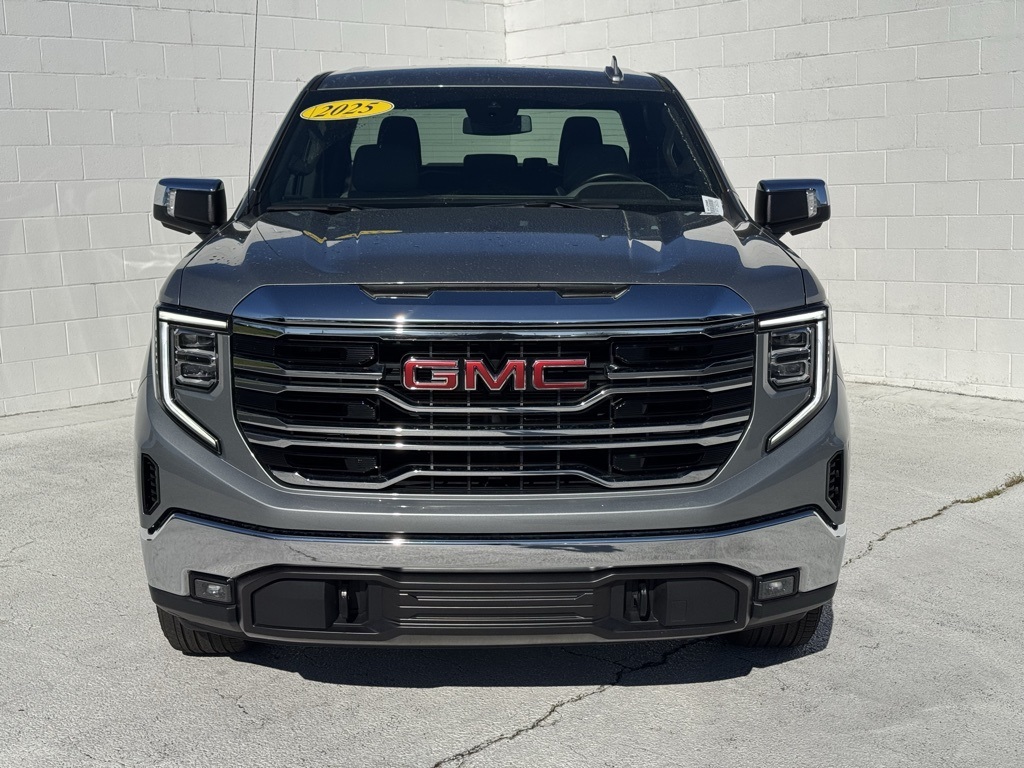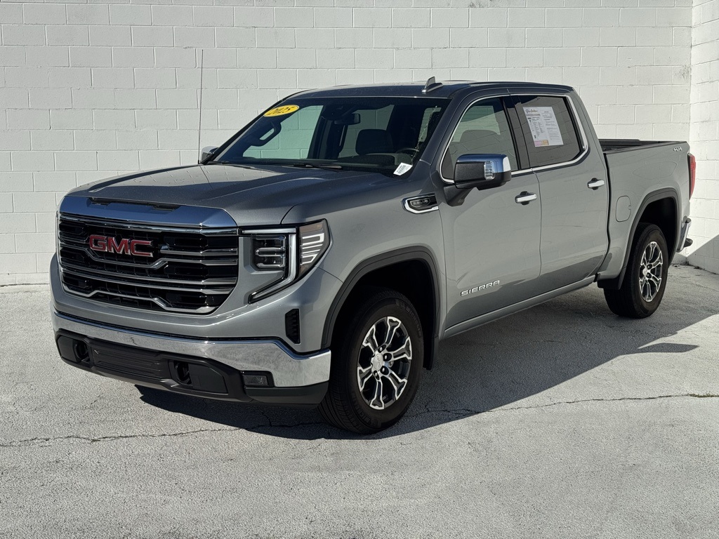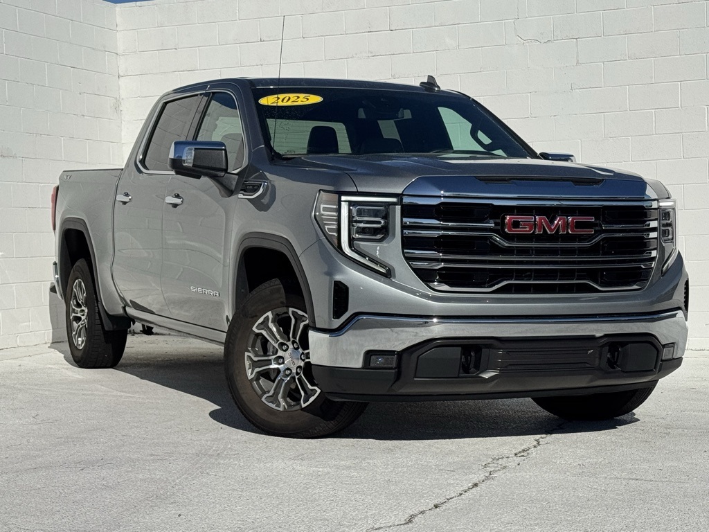 - Jim Hudson Chevrolet is proud to present you with another True Market Priced Pre-Owned Vehicle. This 2025 GMC Sierra 1500 SLT is loaded with the following Factory Options:Standard Suspension Package, Trailering Package (Hitch Guidance), 10-Speed Automatic, 4WD, Dark Walnut/Slate w/Perforated Leather-Appointed Front Outboard Seat Trim, 10-Way Power Passenger Seat Adjuster w/Lumbar, Apple CarPlay/Android Auto, Automatic temperature control, Chrome Header & Chrome Grille Insert Bars, Forward Collision Alert, Heated front seats, Lane Keep Assist w/Lane Departure Warning, Navigation System, Wireless Apple CarPlay/Wireless Android Auto, 10-Way Power Driver Seat Adjuster w/Lumbar, 120-Volt Bed Mounted Power Outlet, 120-Volt Interior Power Outlet, 170 Amp Alternator, 2 Charge/Data USB Ports, 2 Type-C Charge-Only Rear USB Ports, 4-Wheel Disc Brakes, 6 Speakers, 6-Speaker Audio System Feature, ABS brakes, Air Conditioning, Alloy wheels, AM/FM radio: SiriusXM with 360L, Auto High-beam Headlights, Auto-dimming door mirrors, Auto-dimming Rear-View mirror, Auto-Locking Rear Differential, Automatic Emergency Braking, Auxiliary External Transmission Oil Cooler, Brake assist, Buckle to Drive, Bumpers: chrome, Color-Keyed Carpeting Floor Covering, Compass, Deep-Tinted Glass, Delay-off headlights, Driver door bin, Driver Memory, Driver vanity mirror, Dual front impact airbags, Dual front side impact airbags, Electric Rear-Window Defogger, Electronic Stability Control, Emergency communication system: OnStar, Following Distance Indicator, Front 40/20/40 Split-Bench Seat, Front anti-roll bar, Front Center Armrest w/Storage, Front dual zone A/C, Front fog lights, Front Frame-Mounted Black Recovery Hooks, Front Pedestrian Braking, Front Rain-Sensing Wipers, Front reading lights, Front wheel independent suspension, Fully automatic headlights, HD Rear Vision Camera, Heated door mirrors, Heated Driver & Front Outboard Passenger Seating, Heated steering wheel, Illuminated entry, Integrated Trailer Brake Controller, IntelliBeam Automatic High Beam On/Off, Keyless Open & Start, LED Cargo Area Lighting, Low tire pressure warning, Manual Tilt-Wheel & Telescoping Steering Column, Memory seat, Occupant sensing airbag, OnStar Services Capable, Outside temperature display, Overhead airbag, Overhead console, Panic alarm, Passenger door bin, Passenger vanity mirror, Perf Leather-Appointed Front Outboard Seat Trim, Perimeter Lighting, Power Door Locks, Power door mirrors, Power driver seat, Power Front Passenger Windows w/Express Up/Down, Power Front Windows w/Driver Express Up/Down, Power passenger seat, Power Rear Windows w/Express Down, Power steering, Power windows, Push Button Start, Radio data system, Radio: Premium GMC Infotainment Audio System, Rain sensing wipers, Rear reading lights, Rear seat center armrest, Rear step bumper, Rear Wheelhouse Liners, Rear window defroster, Remote keyless entry, Remote Vehicle Starter System, Security system, SiriusXM w/360L Trial Subscription, Speed control, Speed-sensing steering, Split folding rear seat, Steering Wheel Audio Controls, Steering wheel mounted audio controls, Tachometer, Telescoping steering wheel, Theft Deterrent System (Unauthorized Entry), Tilt steering wheel, Traction control, Trip computer, Variably intermittent wipers, Voltmeter, Wheels: 18" x 8.5" 6-Spoke Machined Aluminum, and Wi-Fi Hotspot Capable Visit www.FuelEconomy.gov to get current fuel economy ratings for this vehicle.Clean CARFAX. Odometer is 13049 miles below market average! CARFAX One-Owner.2025 GMC Sierra 1500 SLT One Owner, 10-Speed Automatic, 4WD, Dark Walnut/Slate w/Perforated Leather-Appointed Front Outboard Seat Trim, 10-Way Power Passenger Seat Adjuster w/Lumbar, Apple CarPlay/Android Auto, Automatic temperature control, Chrome Header & Chrome Grille Insert Bars, Forward Collision Alert, Heated front seats, Hitch Guidance, Lane Keep Assist w/Lane Departure Warning, Navigation System, Standard Suspension Package, Trailering Pa