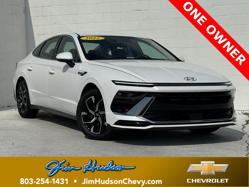 - Jim Hudson Chevrolet is proud to present you with another True Market Priced Pre-Owned Vehicle. This 2025 Hyundai Sonata SEL is loaded with the following Factory Options:Option Group 01, Black Cloth, 17" x 7.0J Aluminum Alloy Wheels, 4-Wheel Disc Brakes, 6 Speakers, ABS brakes, Air Conditioning, Alloy wheels, AM/FM radio: SiriusXM, Apple CarPlay & Android Auto, Auto High-beam Headlights, Automatic temperature control, Brake assist, Bumpers: body-color, Cloth Seating Surfaces, Delay-off headlights, Driver door bin, Driver vanity mirror, Dual front impact airbags, Dual front side impact airbags, Electronic Stability Control, Emergency communication system: Bluelink+, Exterior Parking Camera Rear, Four wheel independent suspension, Front anti-roll bar, Front Bucket Seats, Front Center Armrest, Front dual zone A/C, Front reading lights, Fully automatic headlights, Heated door mirrors, Heated Front Bucket Seats, Heated front seats, Illuminated entry, Knee airbag, Low tire pressure warning, Occupant sensing airbag, Outside temperature display, Overhead airbag, Overhead console, Panic alarm, Passenger door bin, Passenger vanity mirror, Power door mirrors, Power driver seat, Power steering, Power windows, Radio data system, Radio: AM/FM/HD/SiriusXM, Rear anti-roll bar, Rear seat center armrest, Rear side impact airbag, Rear window defroster, Remote keyless entry, Security system, Speed control, Speed-sensing steering, Speed-Sensitive Wipers, Split folding rear seat, Steering wheel mounted audio controls, Tachometer, Telescoping steering wheel, Tilt steering wheel, Traction control, Trip computer, and Variably intermittent wipers Visit www.FuelEconomy.gov to get current fuel economy ratings for this vehicle.Clean CARFAX. CARFAX One-Owner.2025 Hyundai Sonata SEL Black Cloth.For a complete listing of current fuel economy standards please visit www.fueleconomy.gov.