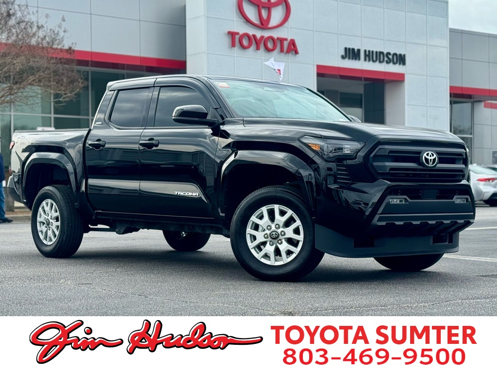- 3.583 Axle Ratio, 4-Wheel Disc Brakes, 6 Speakers, ABS brakes, Air Conditioning, Alloy wheels, AM/FM radio: SiriusXM, Anti-whiplash front head restraints, Apple CarPlay/Android Auto, Auto High-beam Headlights, Auto-dimming Rear-View mirror, Brake assist, Bumpers: body-color, Driver door bin, Dual front impact airbags, Dual front side impact airbags, Electronic Stability Control, Emergency communication system: Safety Connect (1-year trial), Exterior Parking Camera Rear, Fabric Seat Trim, Four wheel independent suspension, Front anti-roll bar, Front Bucket Seats, Front Center Armrest, Front fog lights, Front reading lights, Fully automatic headlights, Heated door mirrors, Illuminated entry, Knee airbag, Low tire pressure warning, Occupant sensing airbag, Outside temperature display, Overhead airbag, Overhead console, Panic alarm, Passenger door bin, Power door mirrors, Power steering, Power windows, Radio: 8" Toyota Audio Multimedia, Rear step bumper, Rear window defroster, Remote keyless entry, Speed control, Speed-sensing steering, Split folding rear seat, Steering wheel mounted audio controls, Tachometer, Telescoping steering wheel, Tilt steering wheel, Traction control, Trip computer, Variably intermittent wipers, Wheels: 17" Styled Alloy.2025 Toyota Tacoma SR5